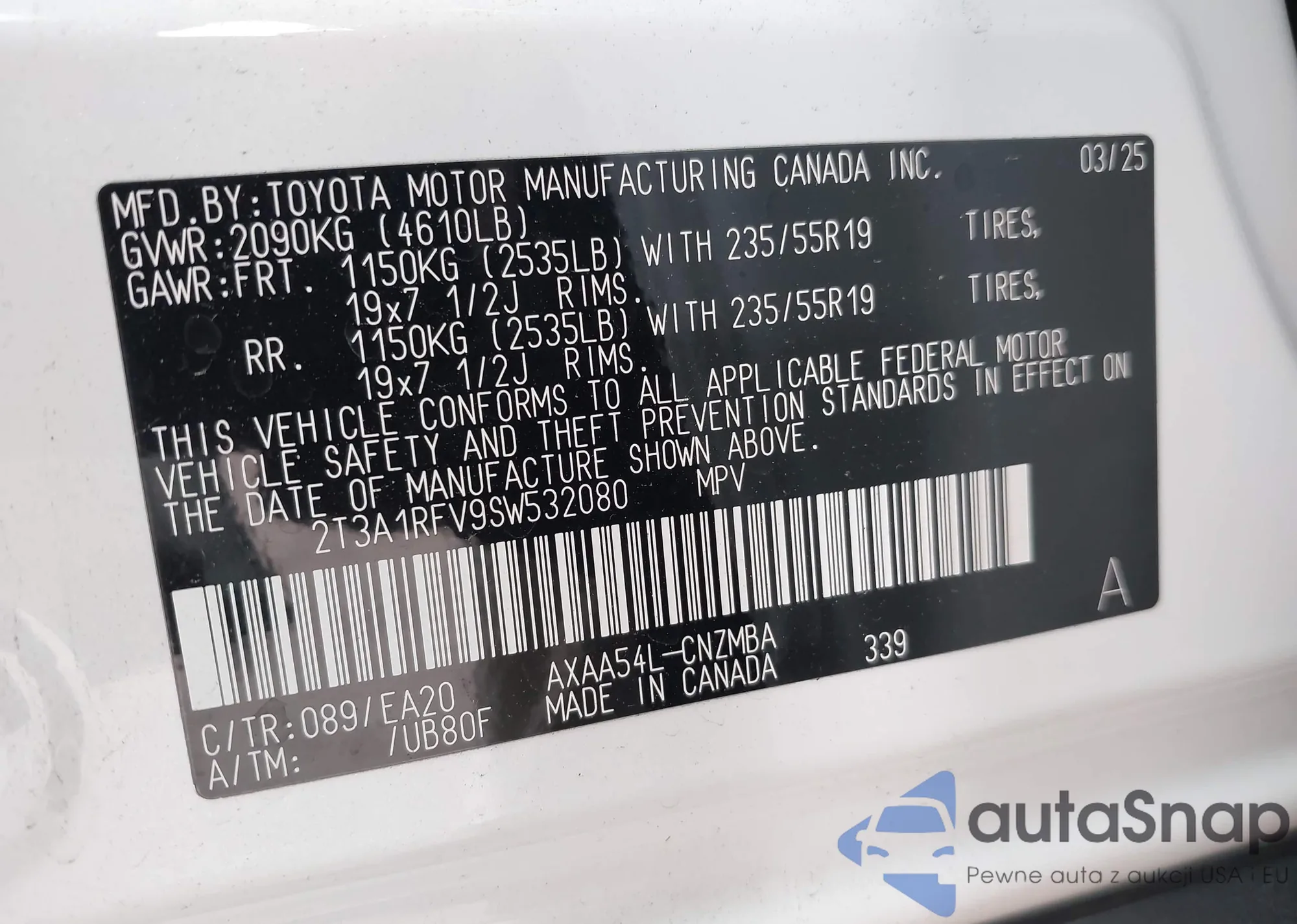 VIN: 2T3A1RFV9SW532080