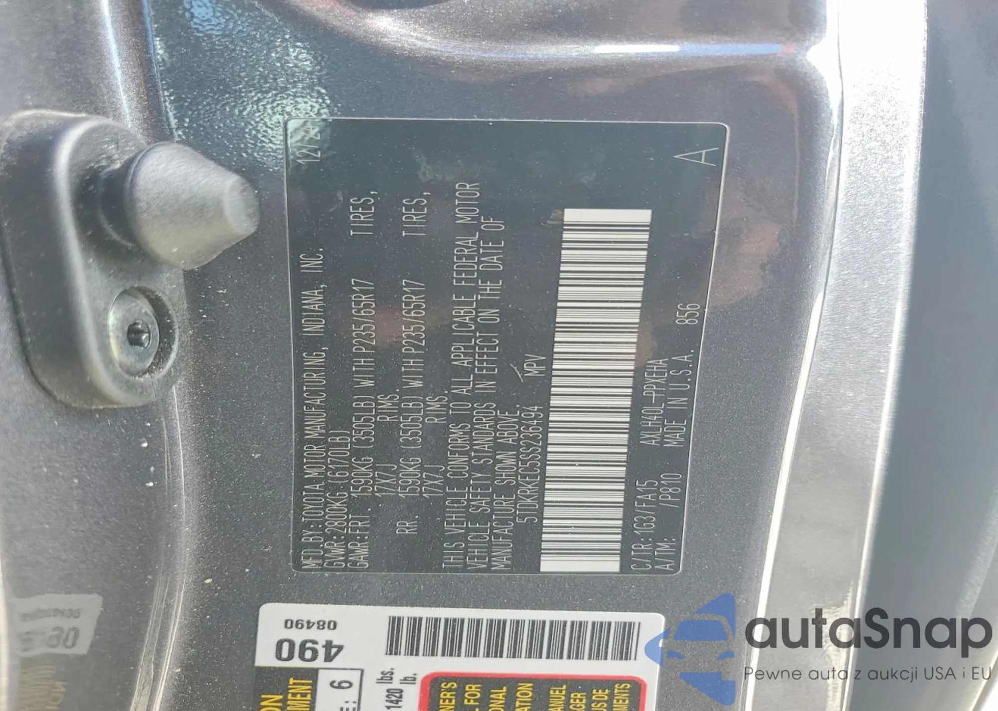 The car Toyota Sienna 2025 (VIN 5TDKRKEC5SS236494) has not been auctioned before. The documents are clean, and the mileage matches or is below the market average. Sold by an insurance company – we recommend purchase. Delivery to the port will take approx. 6–8 weeks.