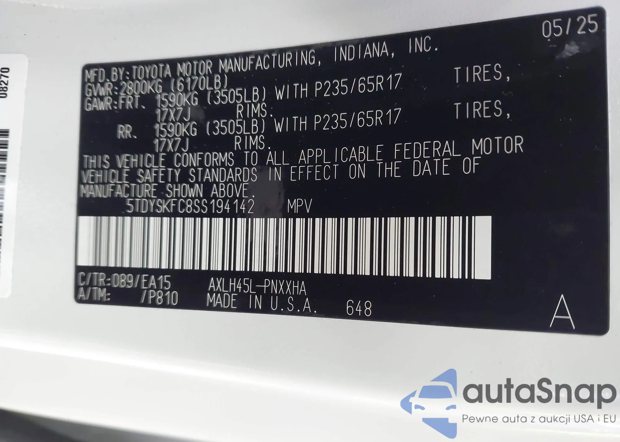 VIN: 5TDYSKFC8SS194142