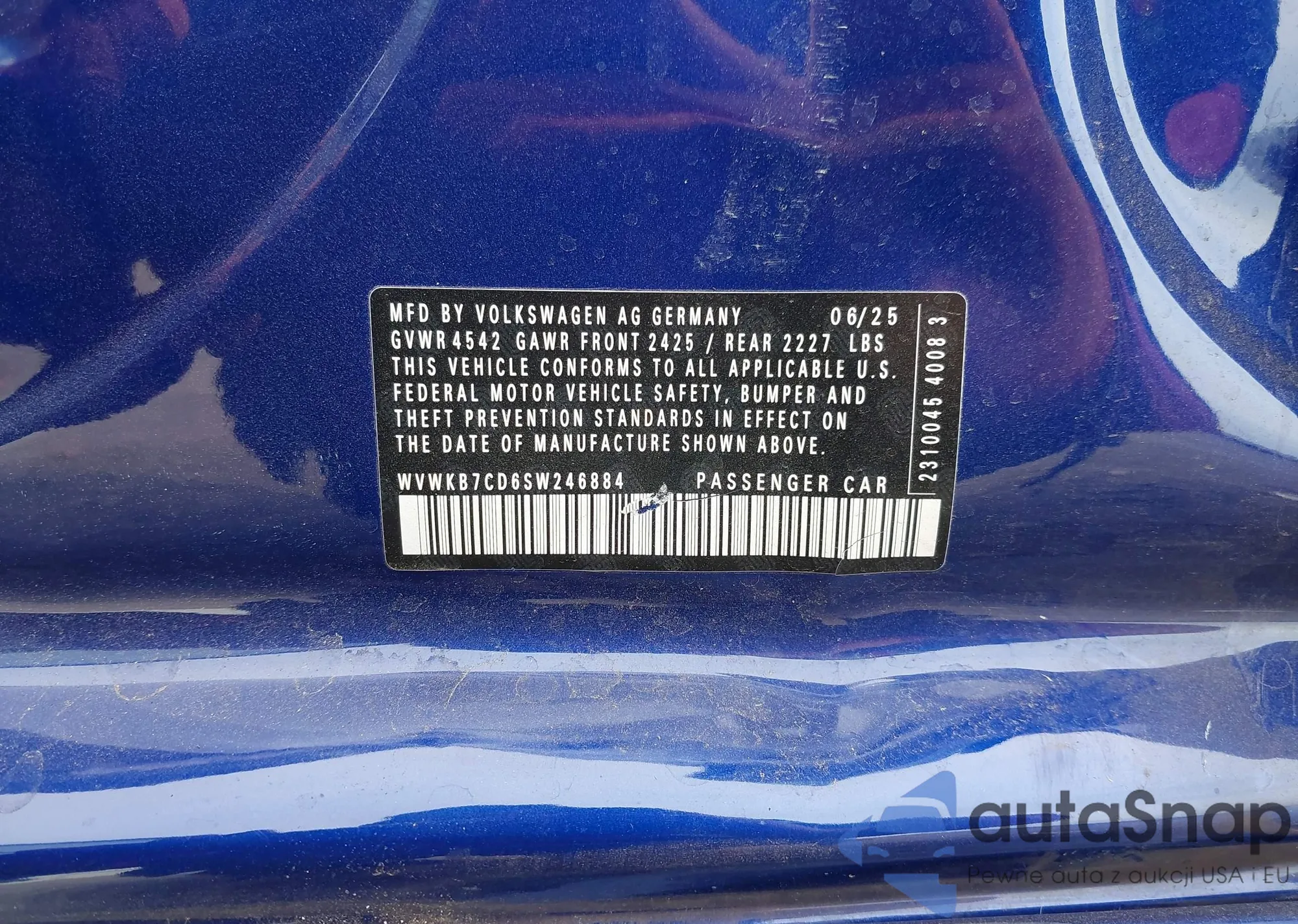 VIN: WVWKB7CD6SW246884