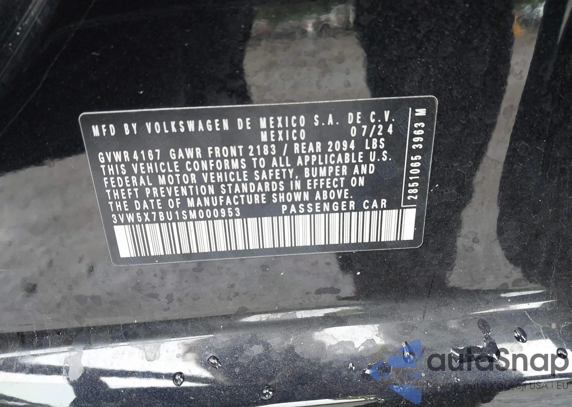 VIN: 3VW5X7BU1SM000953