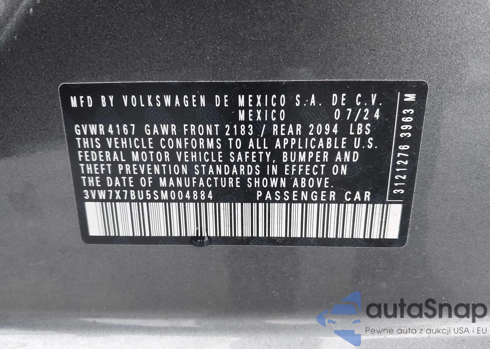 VIN: 3VW7X7BU5SM004884