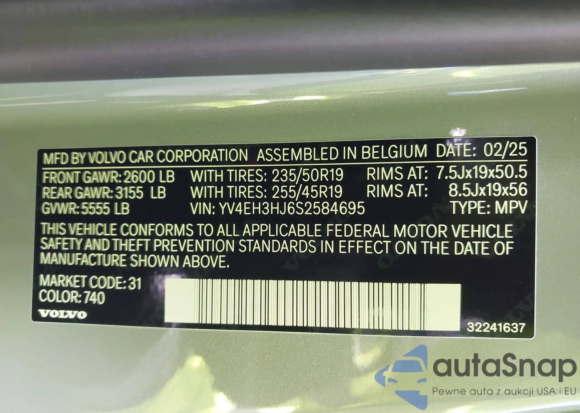 • VIN: YV4EH3HJ6S2584695