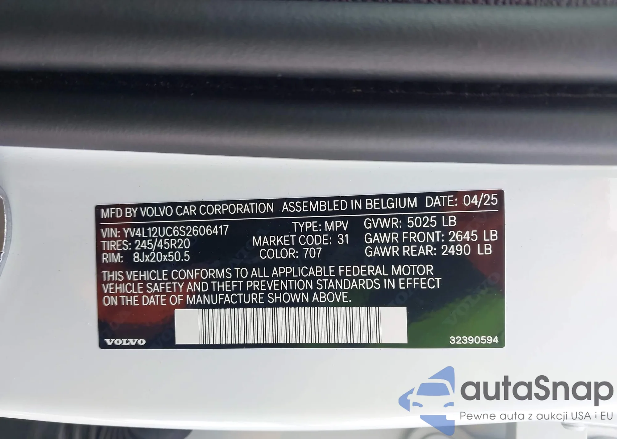 • VIN: YV4L12UC6S2606417
