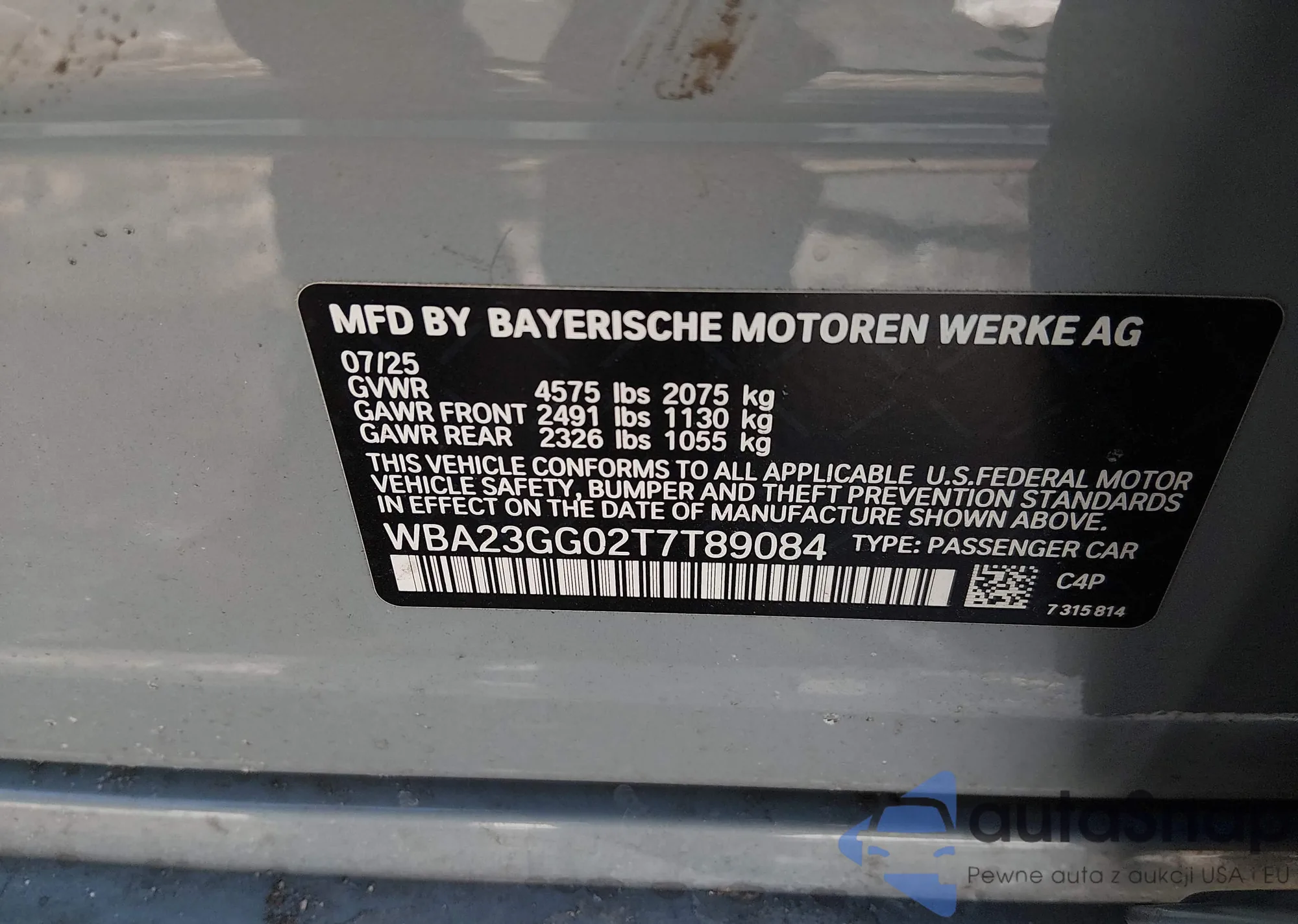 The car BMW 2er 2026 (VIN WBA23GG02T7T89084) has not been auctioned before. The documents are clean, and the mileage matches or is below the market average. Sold by an insurance company – we recommend purchase. Delivery to the port will take approx. 6–8 weeks.