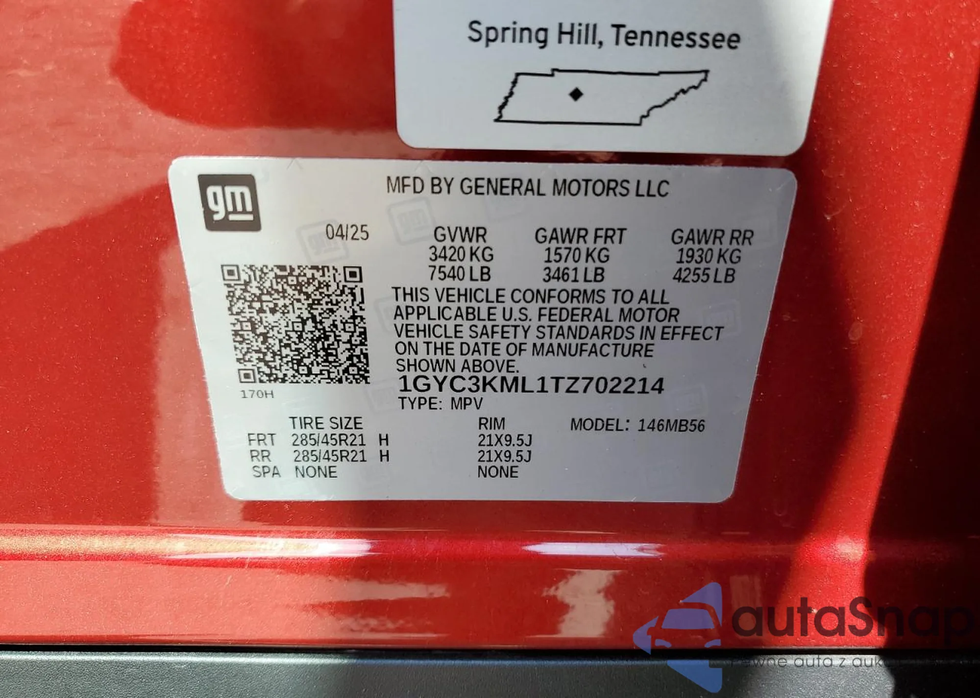 VIN: 1GYC3KML1TZ702214