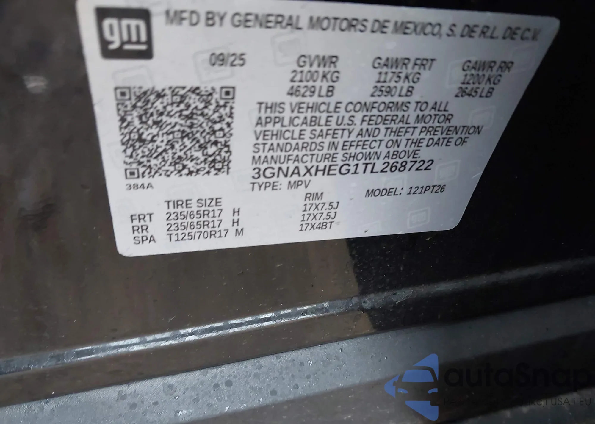 • VIN: 3GNAXHEG1TL268722