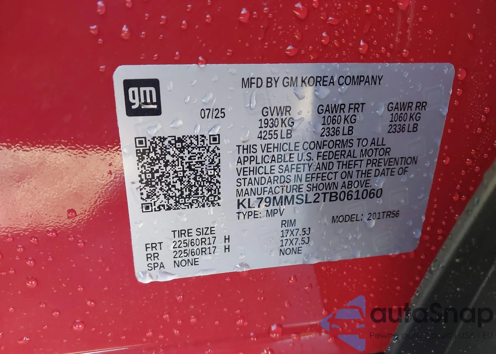 • VIN: KL79MMSL2TB061060
