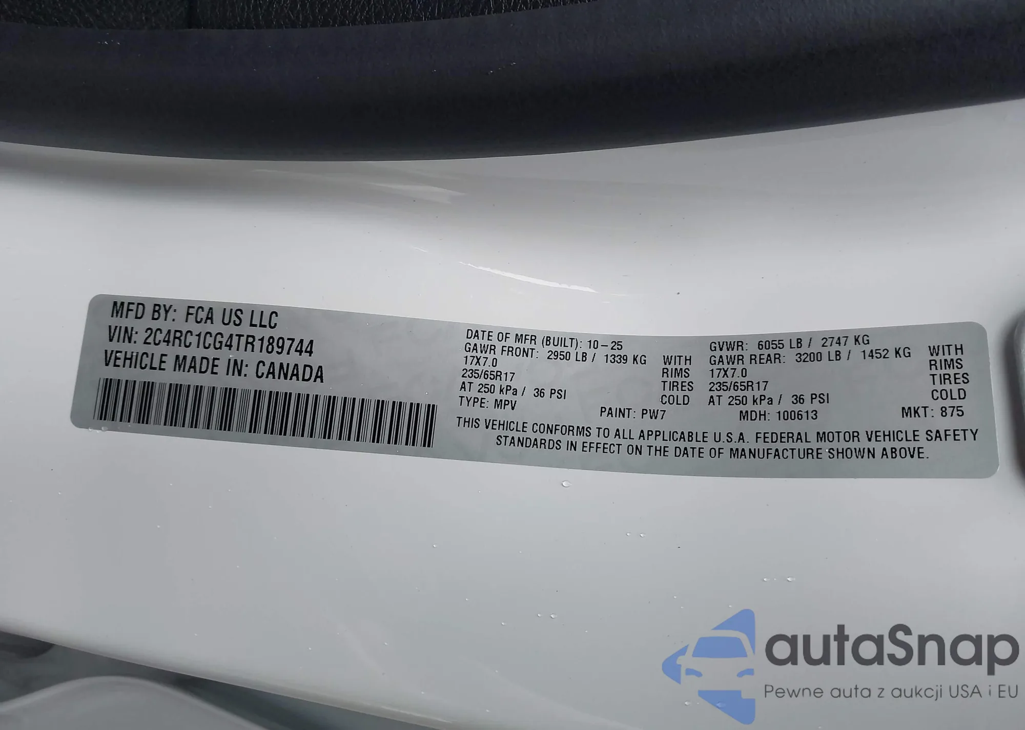 • VIN: 2C4RC1CG4TR189744