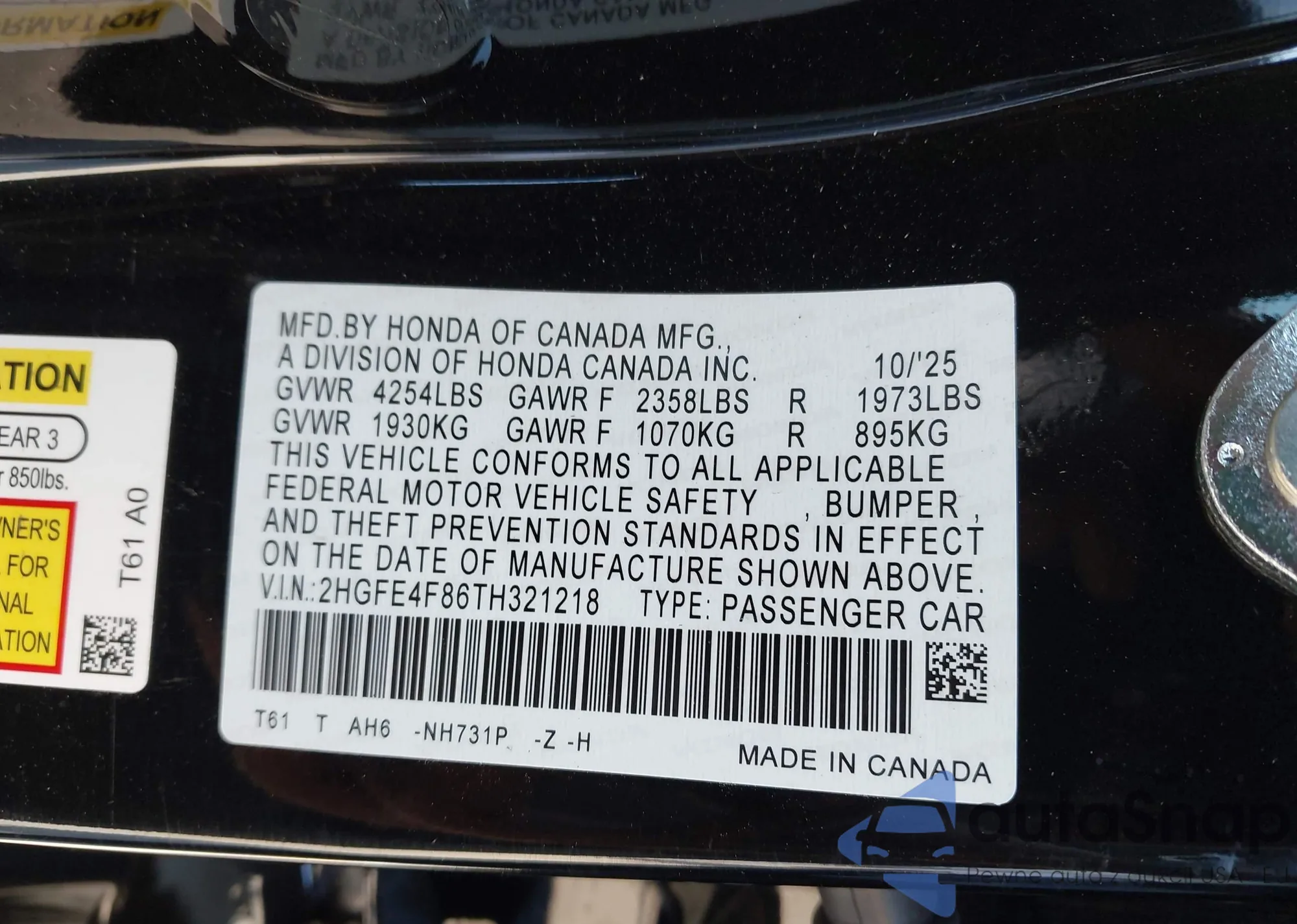 VIN: 2HGFE4F86TH321218