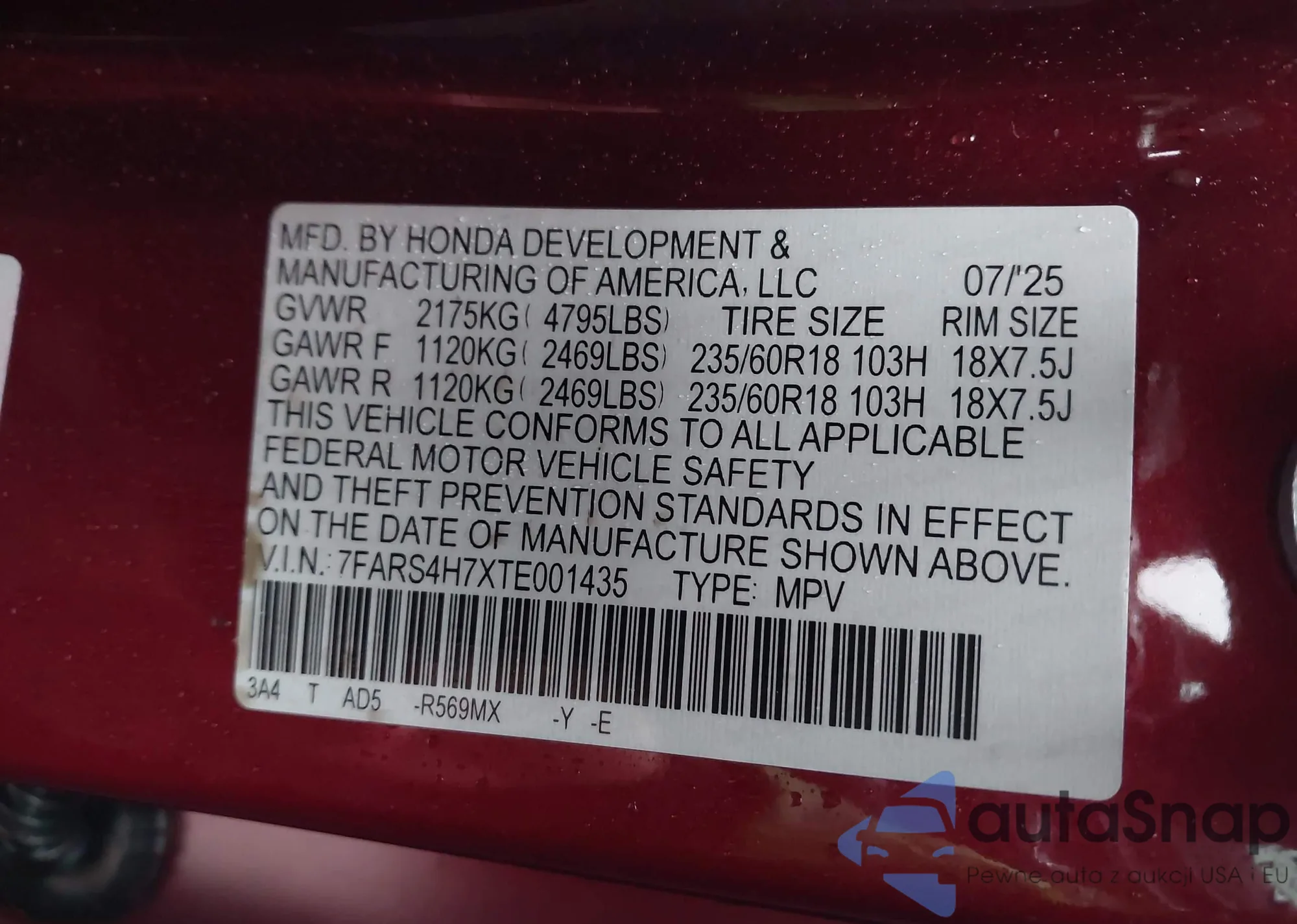 VIN: 7FARS4H7XTE001435