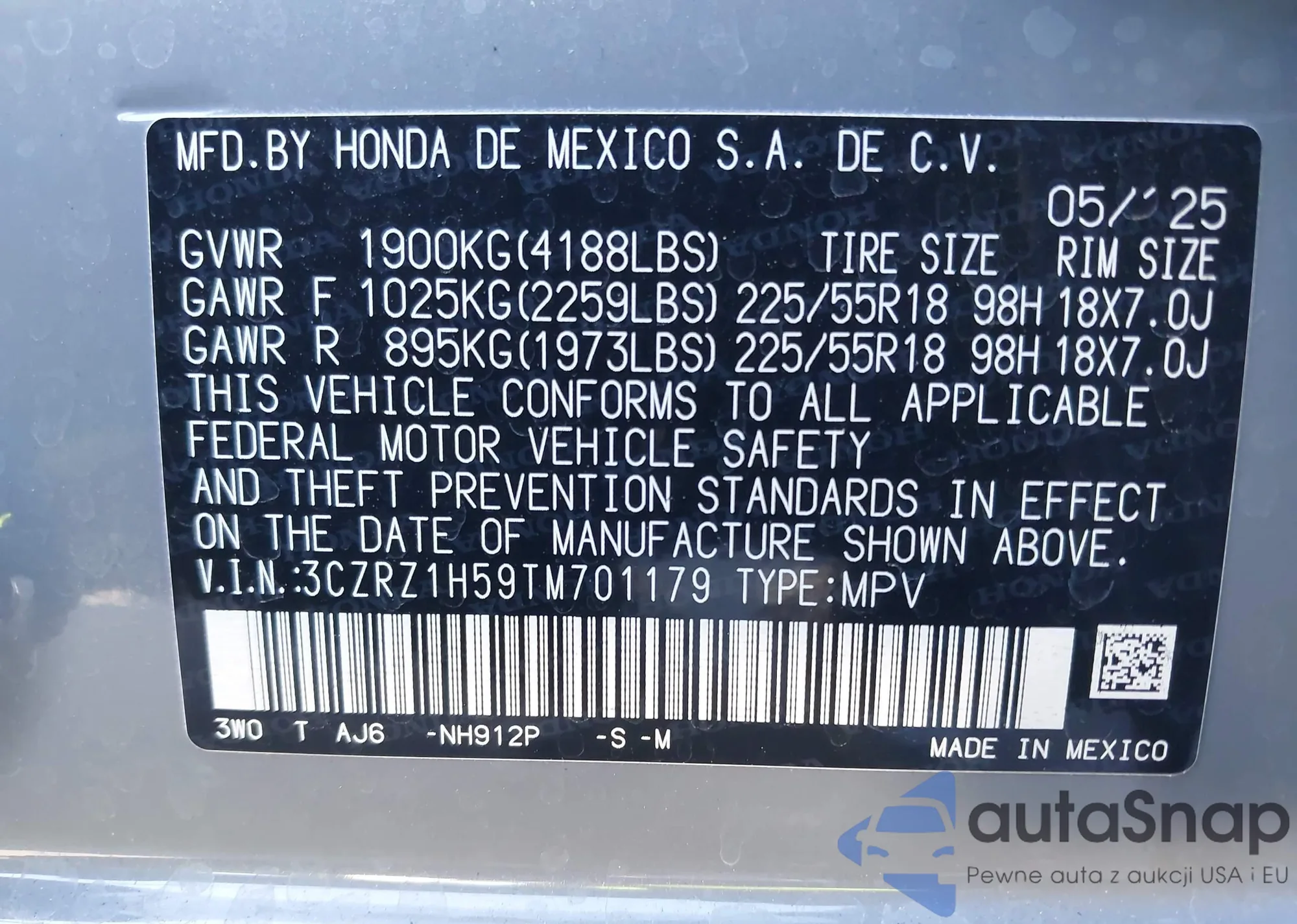 VIN: 3CZRZ1H59TM701179