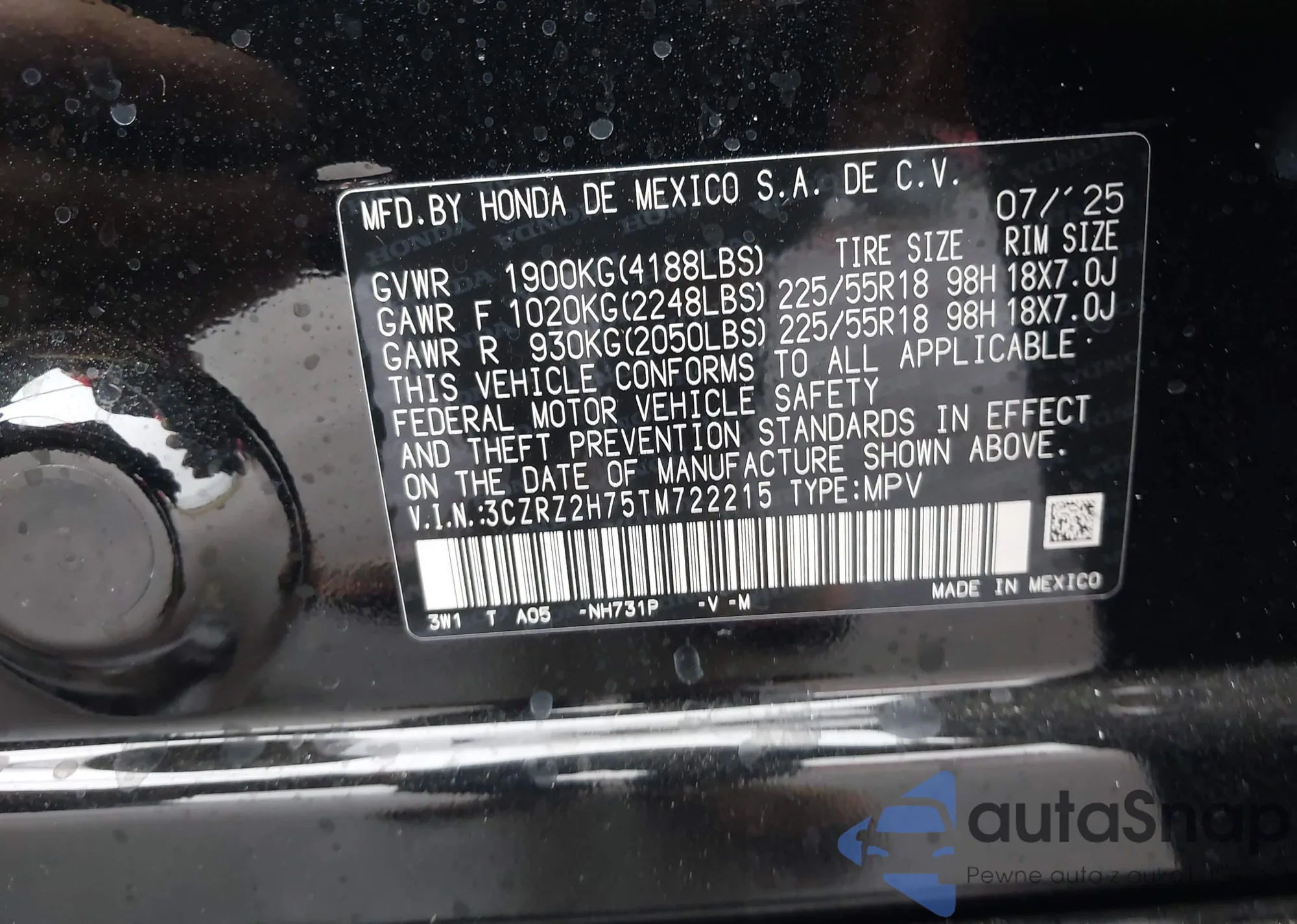 VIN: 3CZRZ2H75TM722215
