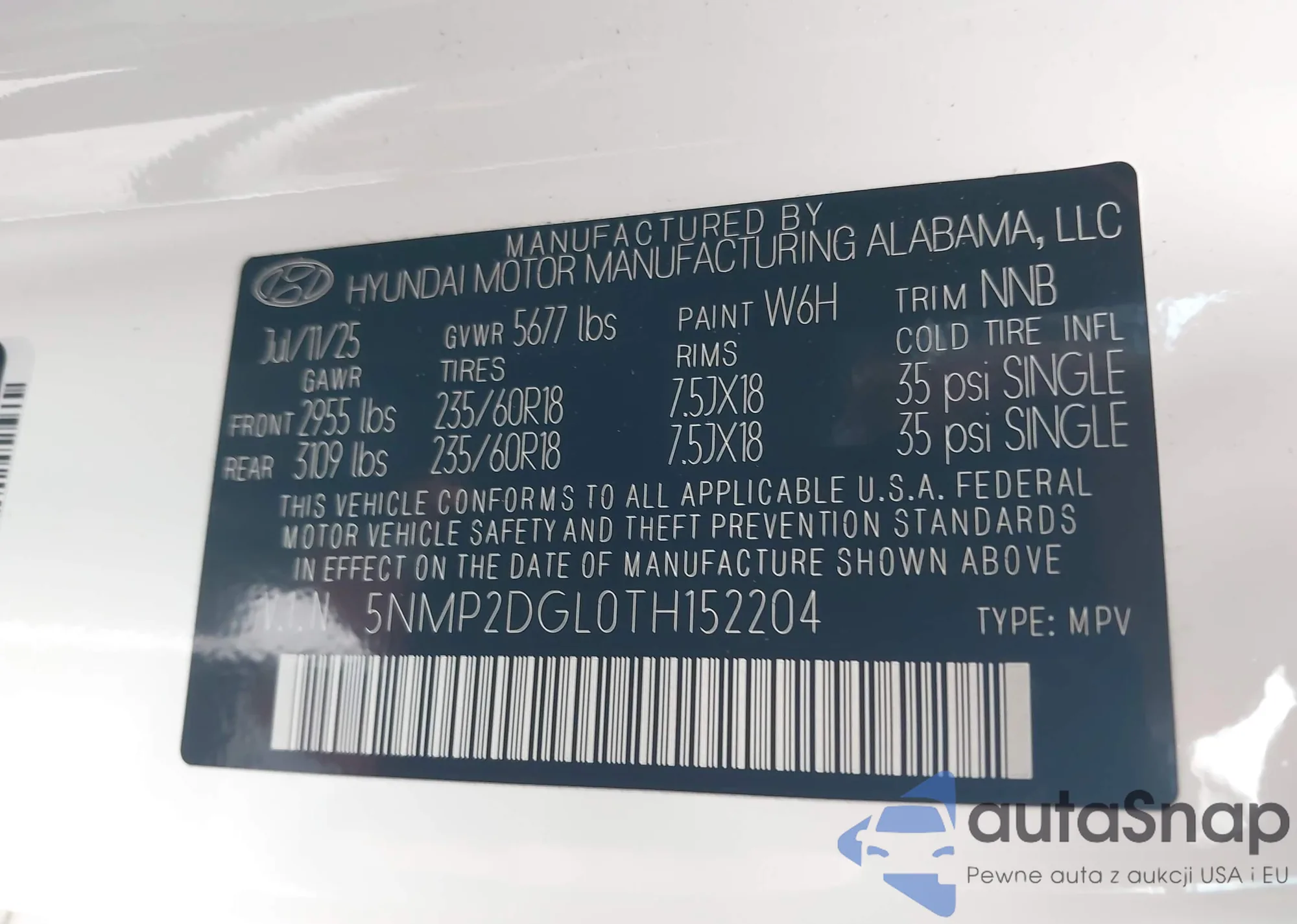 VIN: 5NMP2DGL0TH152204