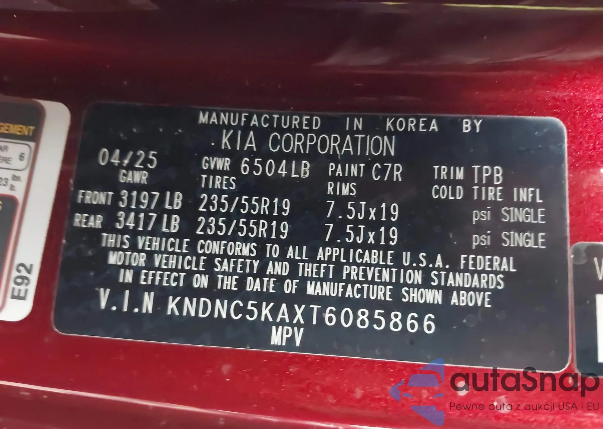 The car Kia Carnival 2026 (VIN KNDNC5KAXT6085866) has not been auctioned before. The documents are clean, and the mileage matches or is below the market average. Sold by an insurance company – we recommend purchase. Delivery to the port will take approx. 6–8 weeks.