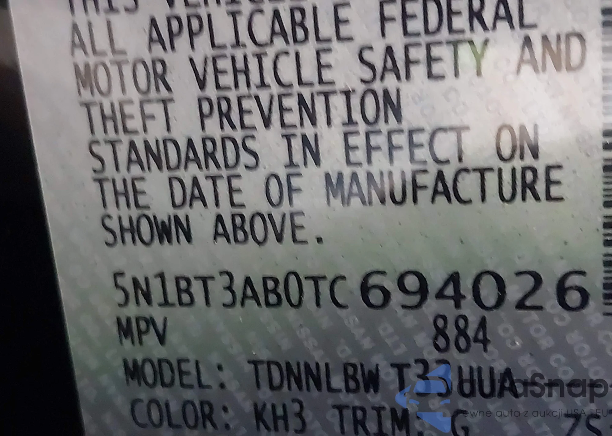• VIN: 5N1BT3AB0TC694026