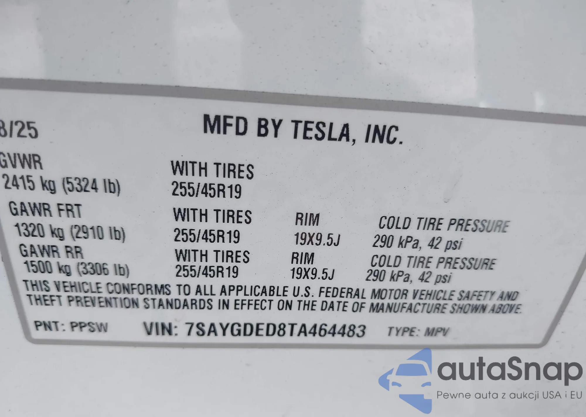 • VIN: 7SAYGDED8TA464483