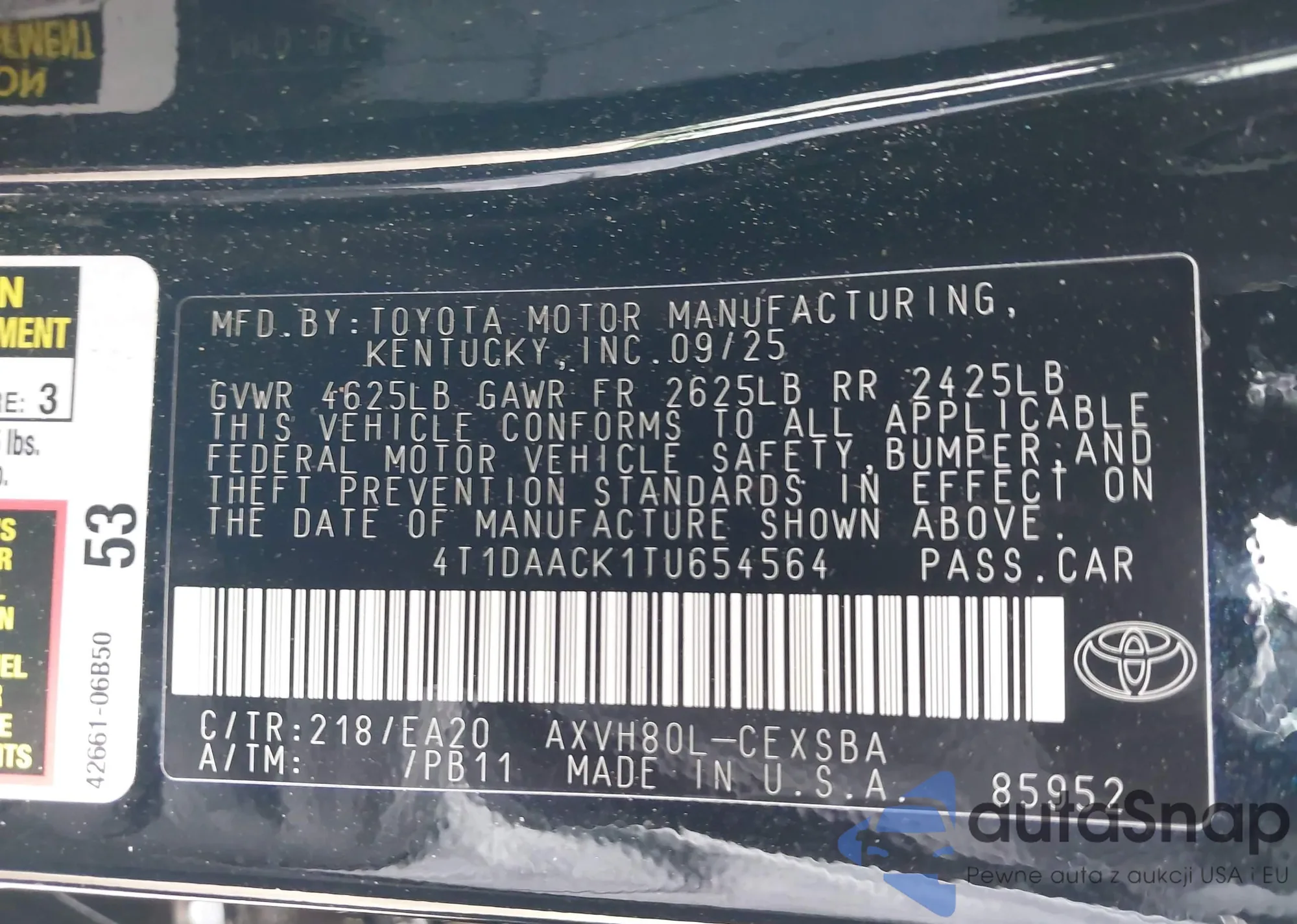 The car Toyota Camry 2026 (VIN 4T1DAACK1TU654564) has not been auctioned before. The documents are clean, and the mileage matches or is below the market average. Sold by an insurance company – we recommend purchase. Delivery to the port will take approx. 6–8 weeks.