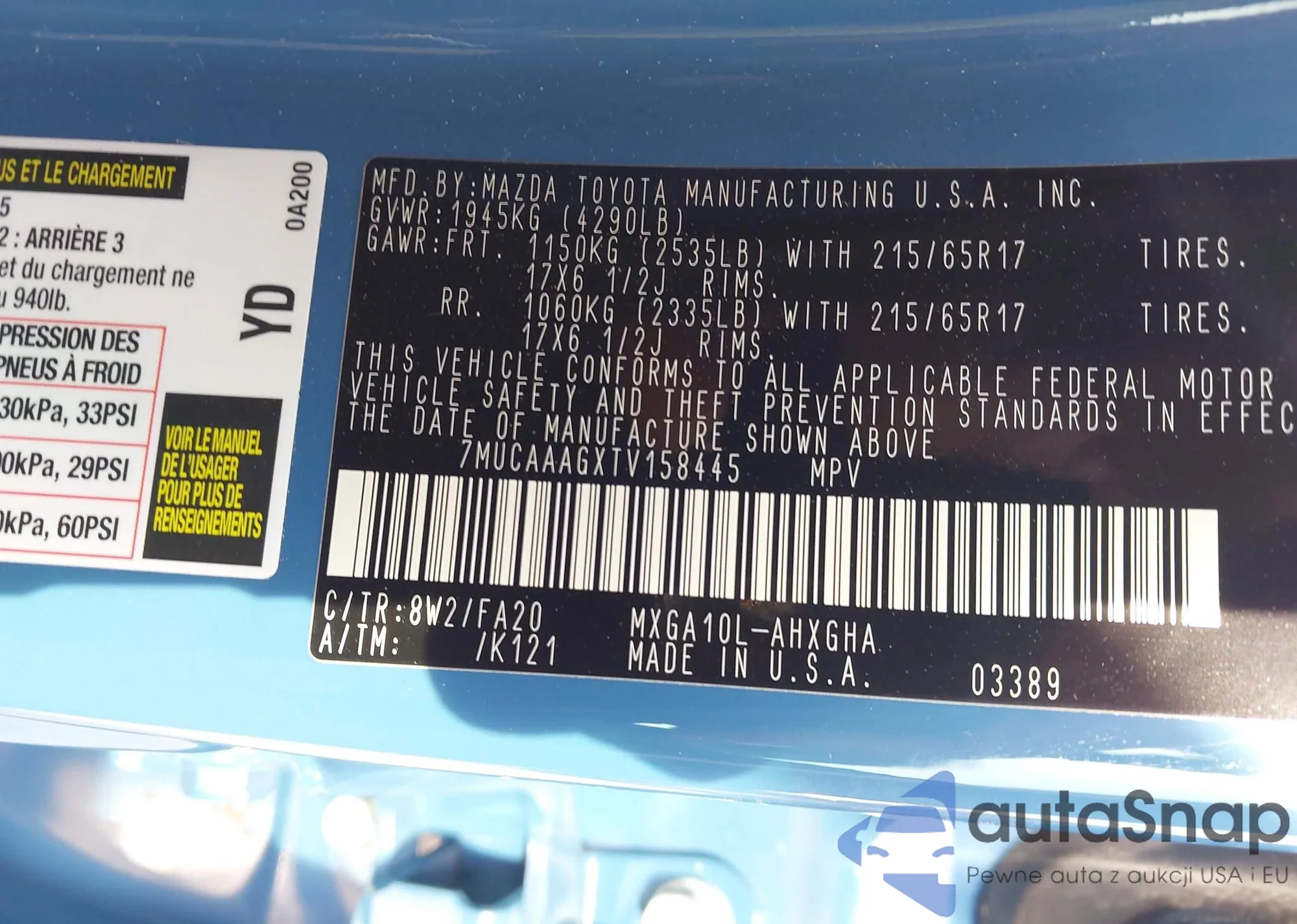 • VIN: 7MUCAAAGXTV158445
