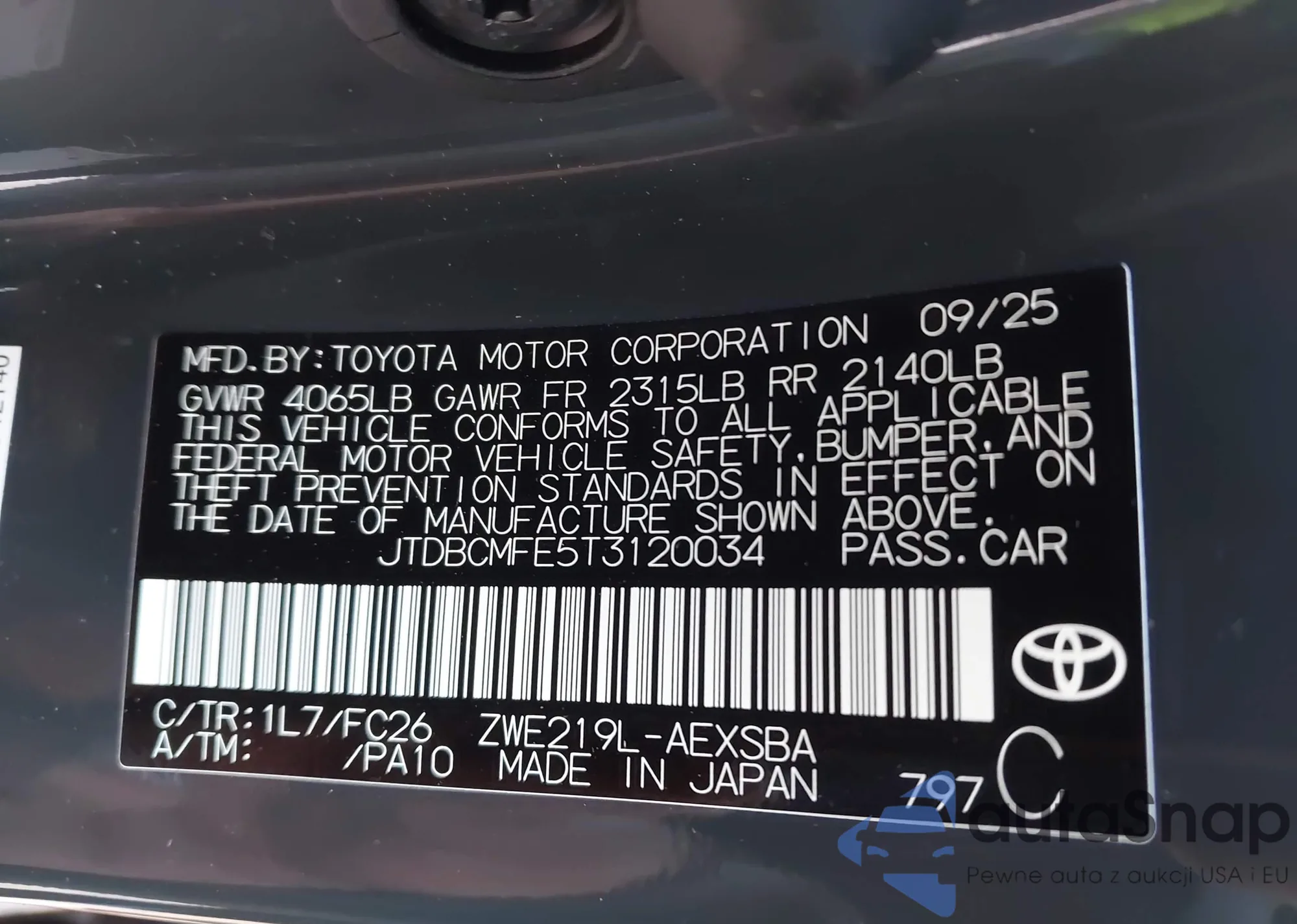 The car Toyota Corolla 2026 (VIN JTDBCMFE5T3120034) has not been auctioned before. The documents are clean, and the mileage matches or is below the market average. Sold by an insurance company – we recommend purchase. Delivery to the port will take approx. 6–8 weeks.