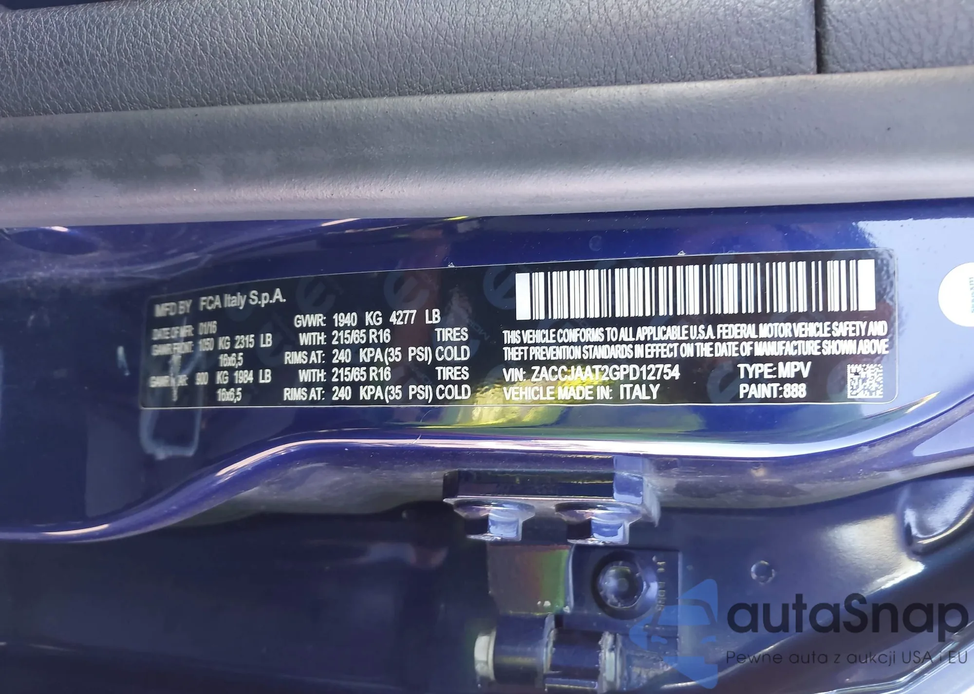 • VIN ZACCJAAT2GPD12754