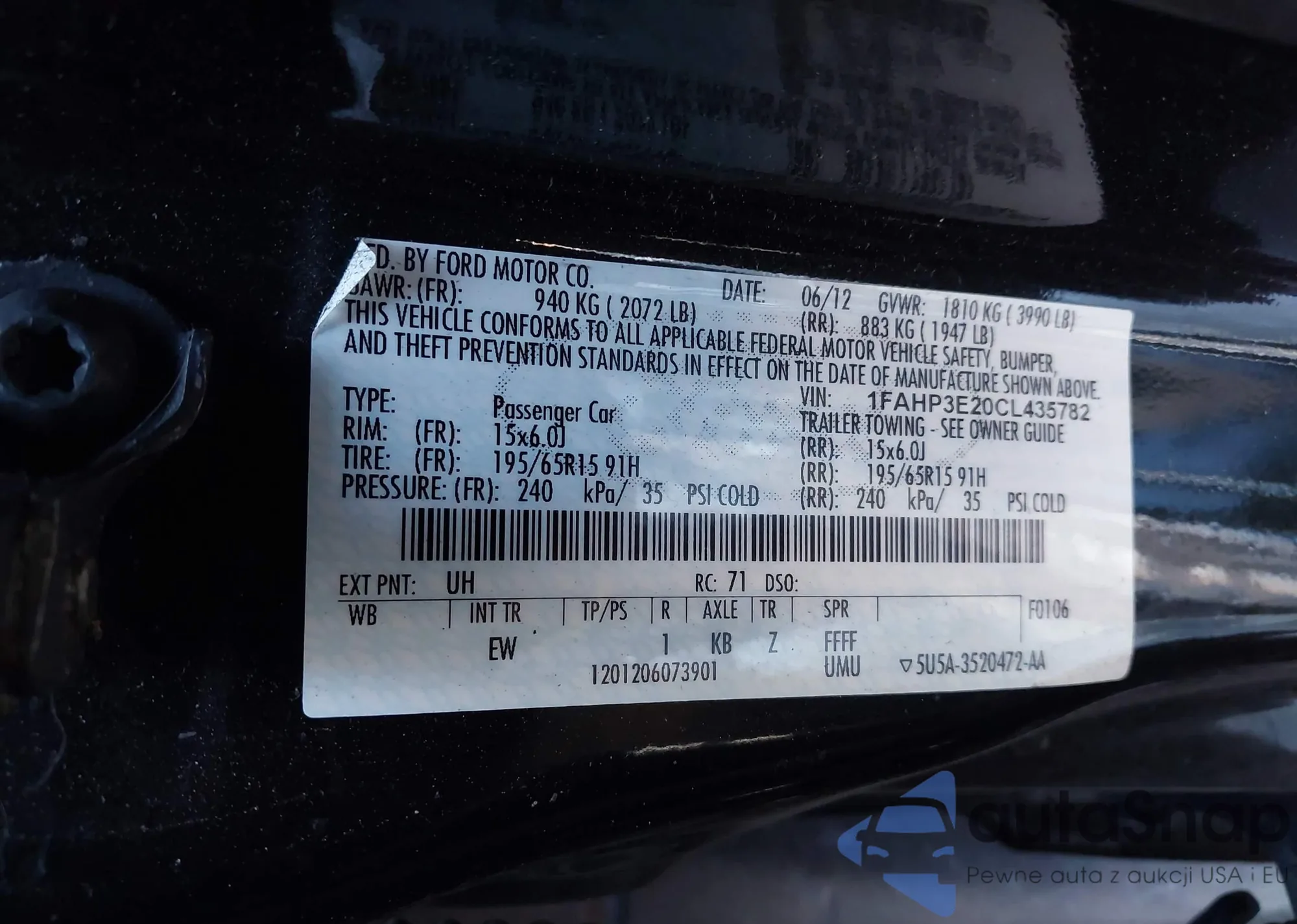 • VIN 1FAHP3E20CL435782