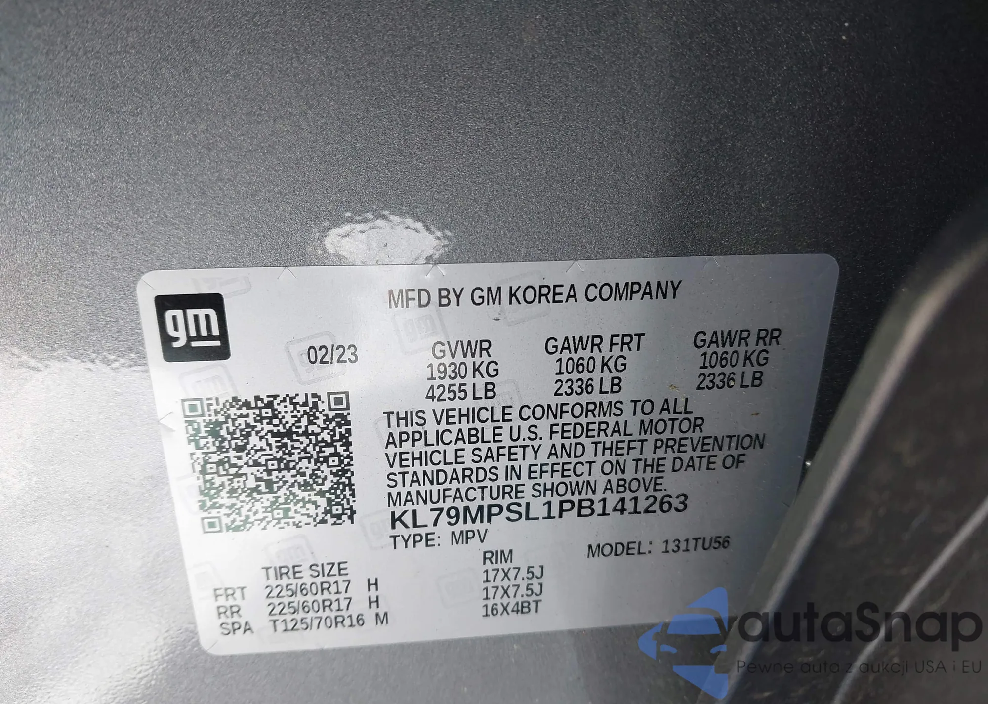 • VIN KL79MPSL1PB141263
