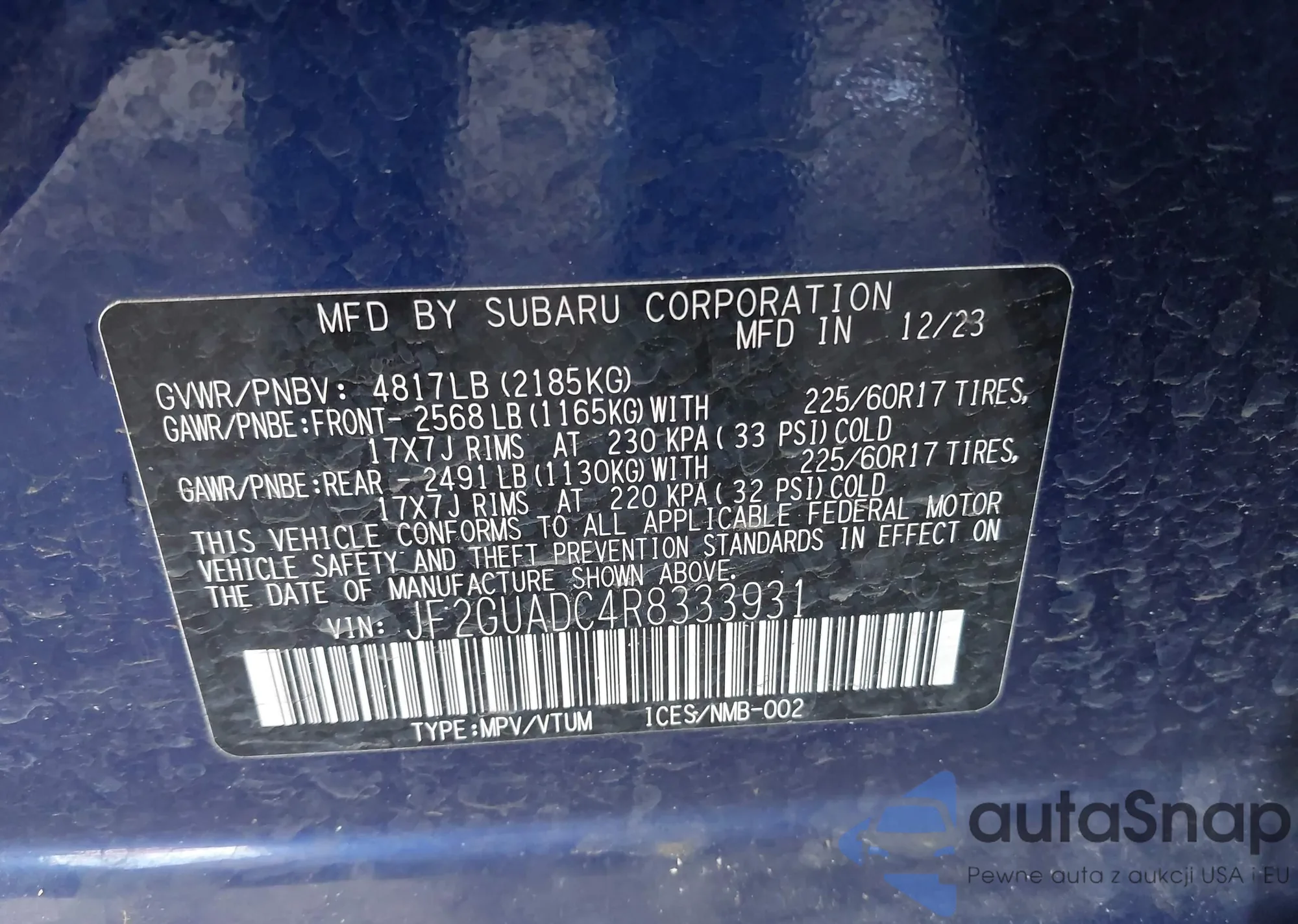 • VIN JF2GUADC4R8333931