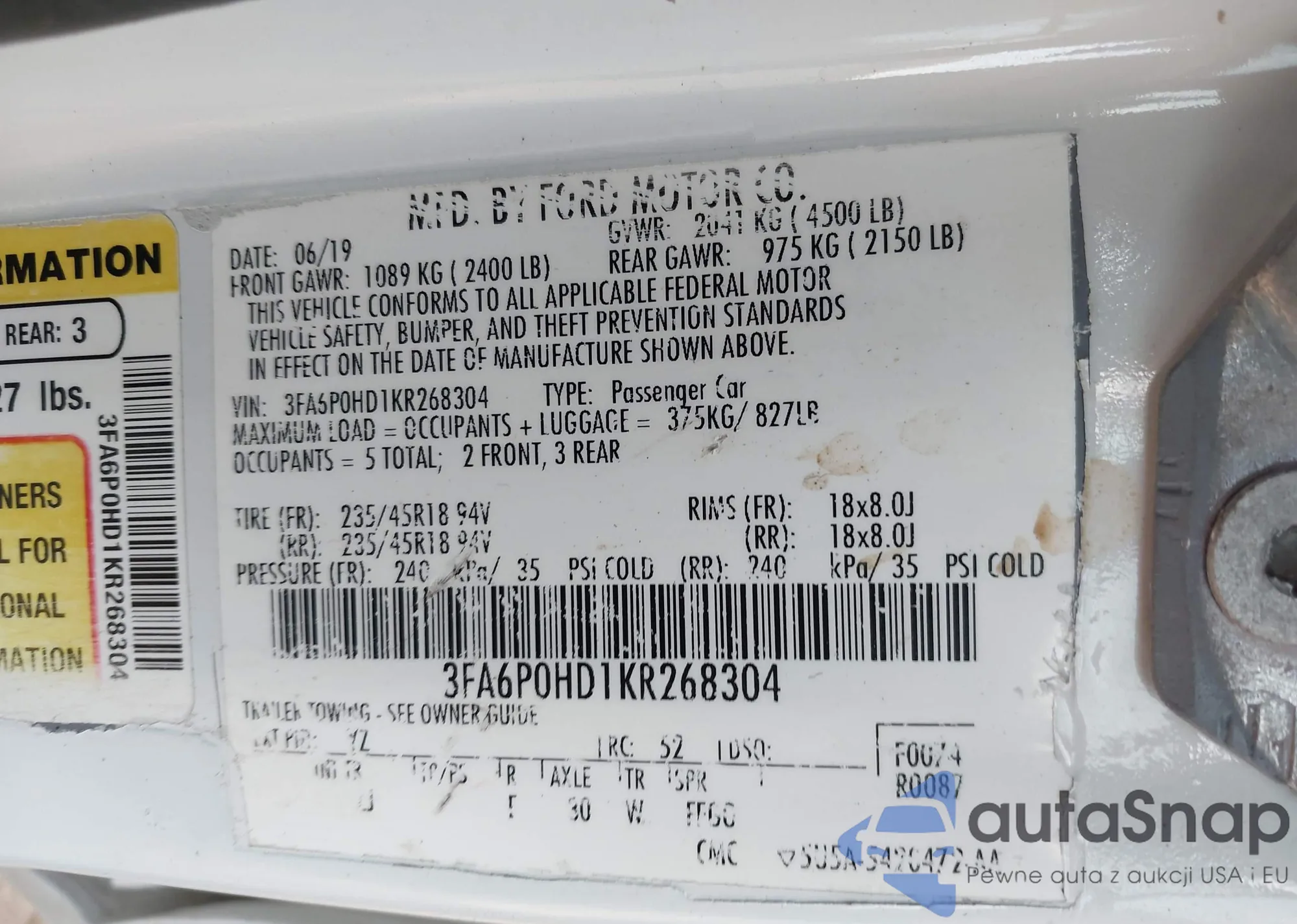 • VIN 3FA6P0HD1KR268304