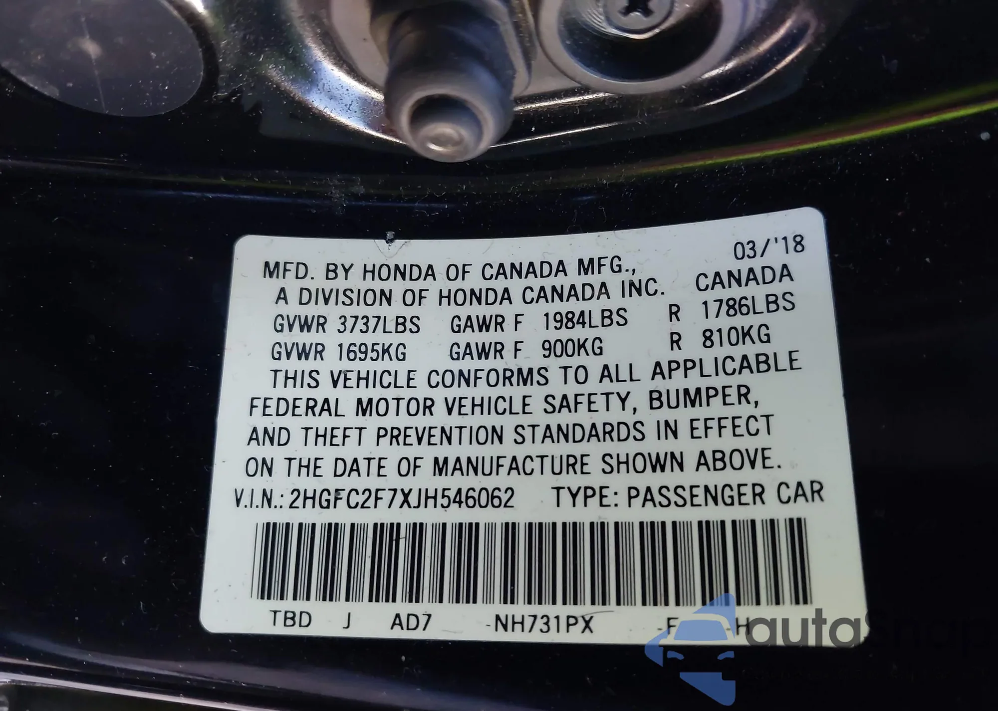 • VIN 2HGFC2F7XJH546062