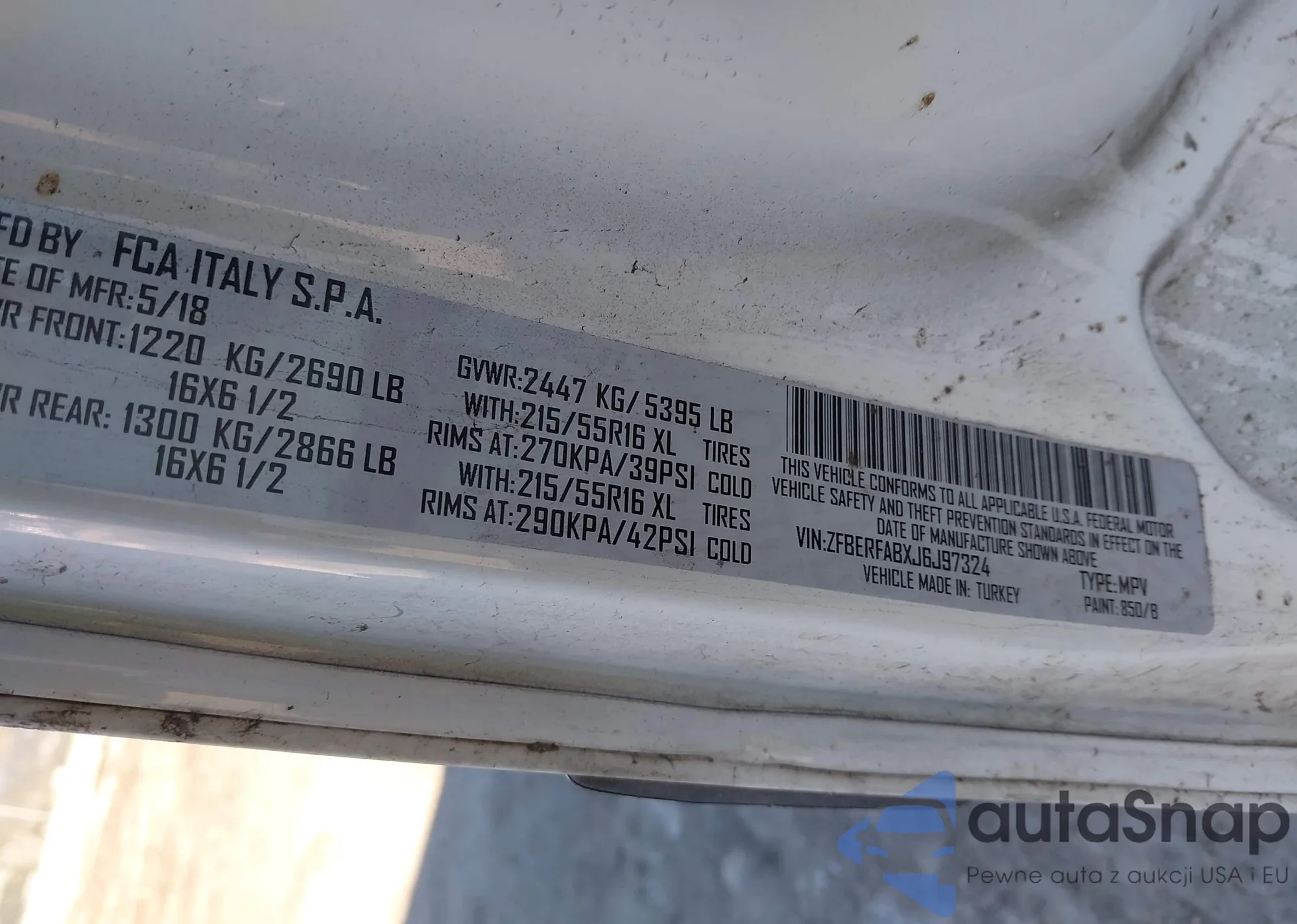 LOT: 43558132 VIN: ZFBERFABXJ6J97324