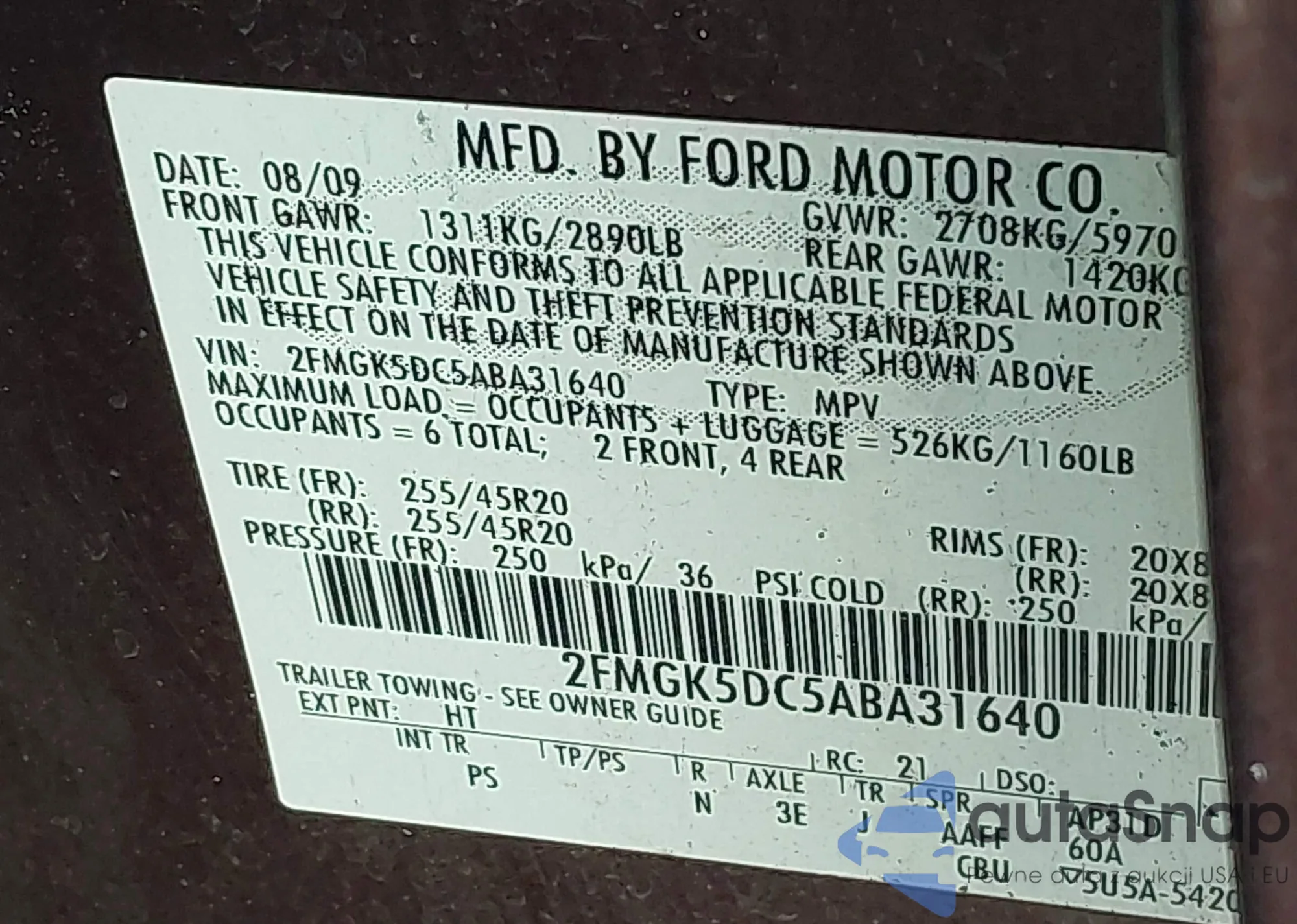 • VIN 2FMGK5DC5ABA31640