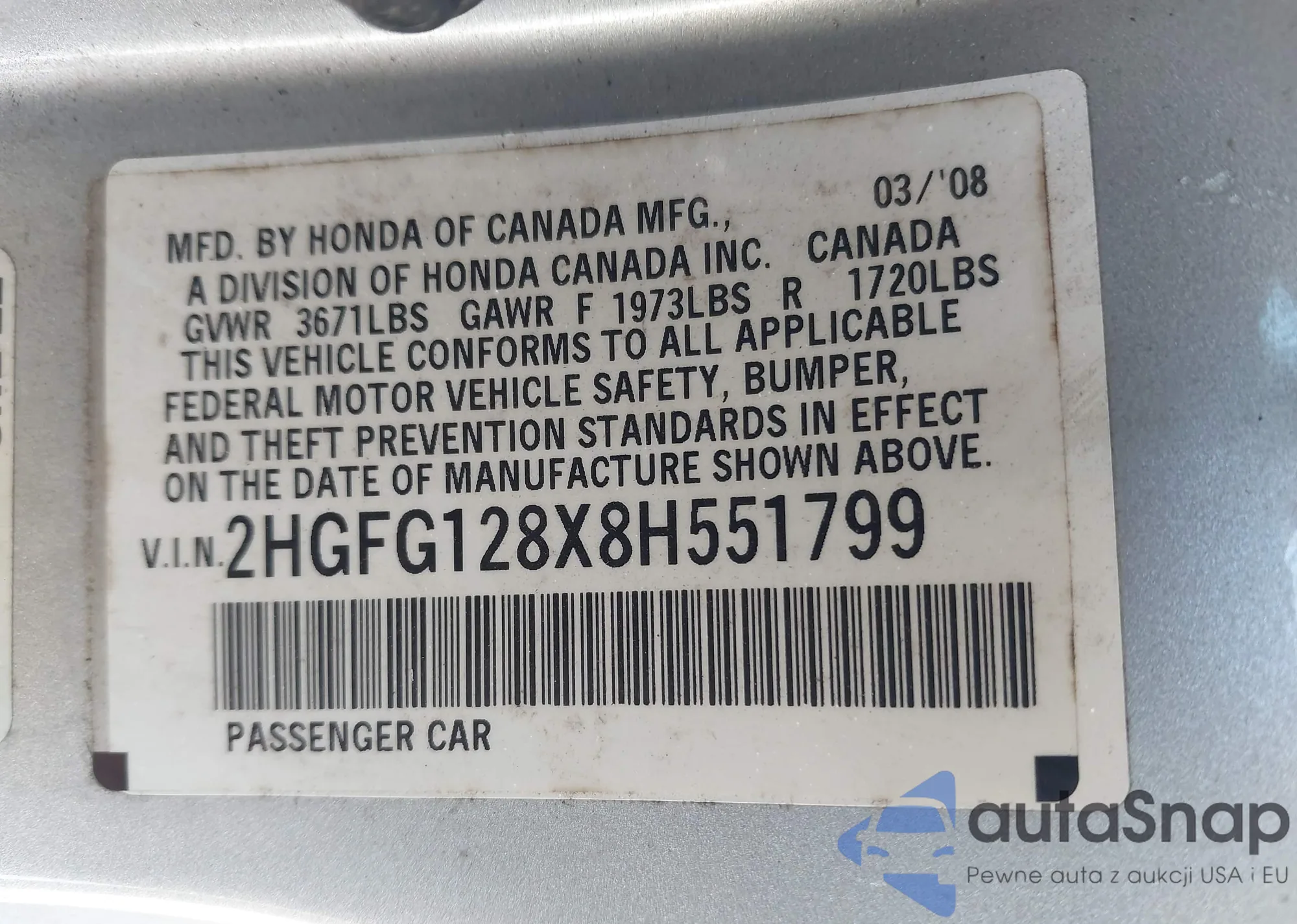 • VIN 2HGFG128X8H551799