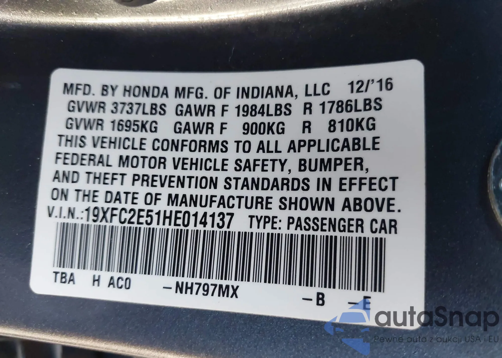 • VIN 19XFC2E51HE014137