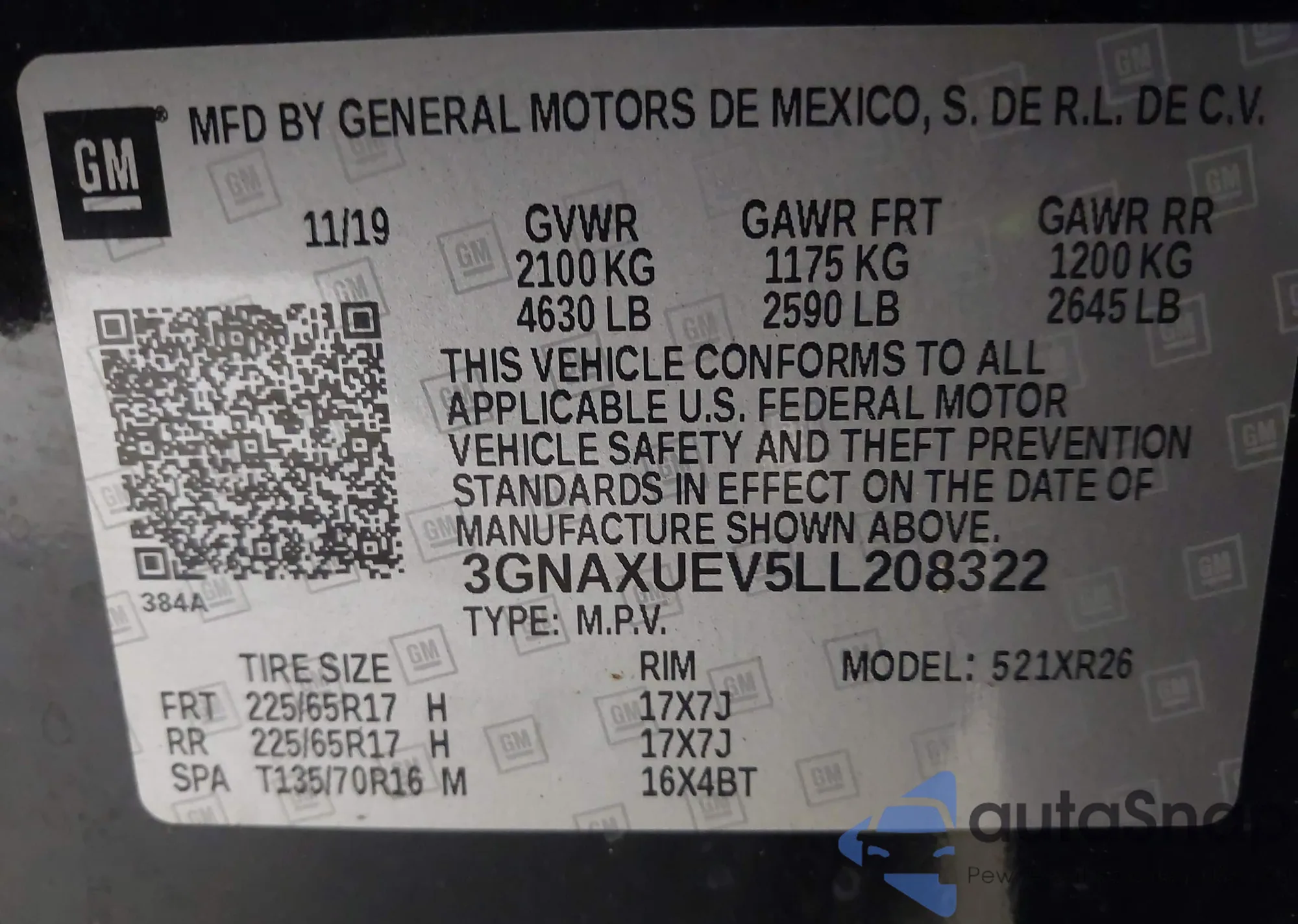 LOT: 43571929 VIN: 3GNAXUEV5LL208322