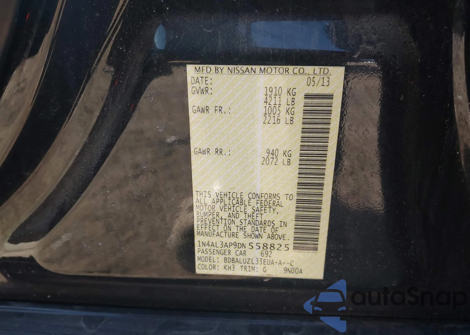 • VIN 1N4AL3AP9DN558825