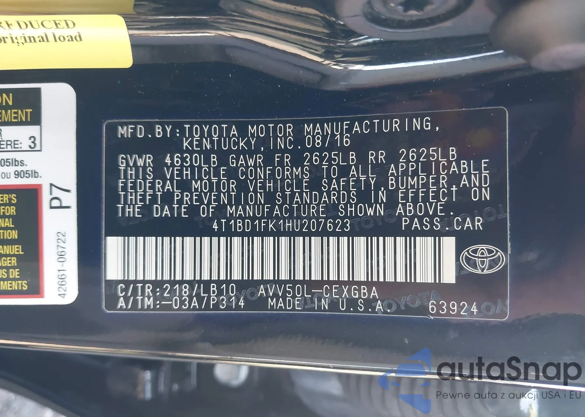 • VIN 4T1BD1FK1HU207623