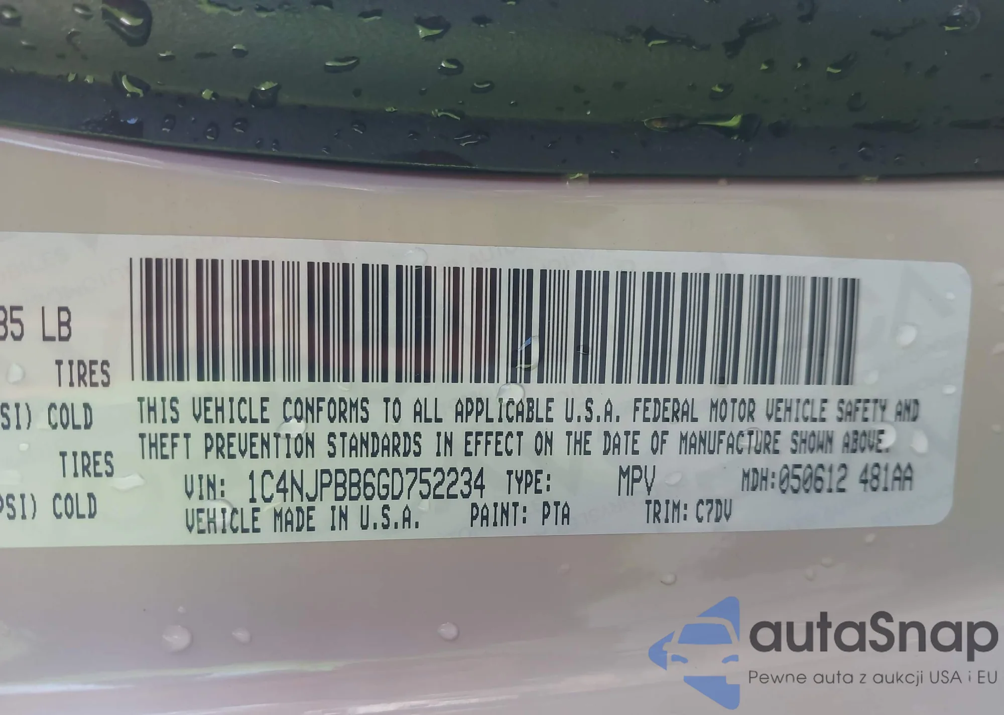 • VIN 1C4NJPBB6GD752234