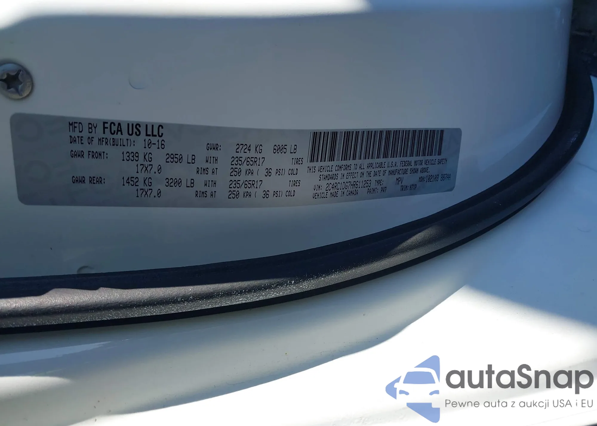 • VIN 2C4RC1DG7HR611253