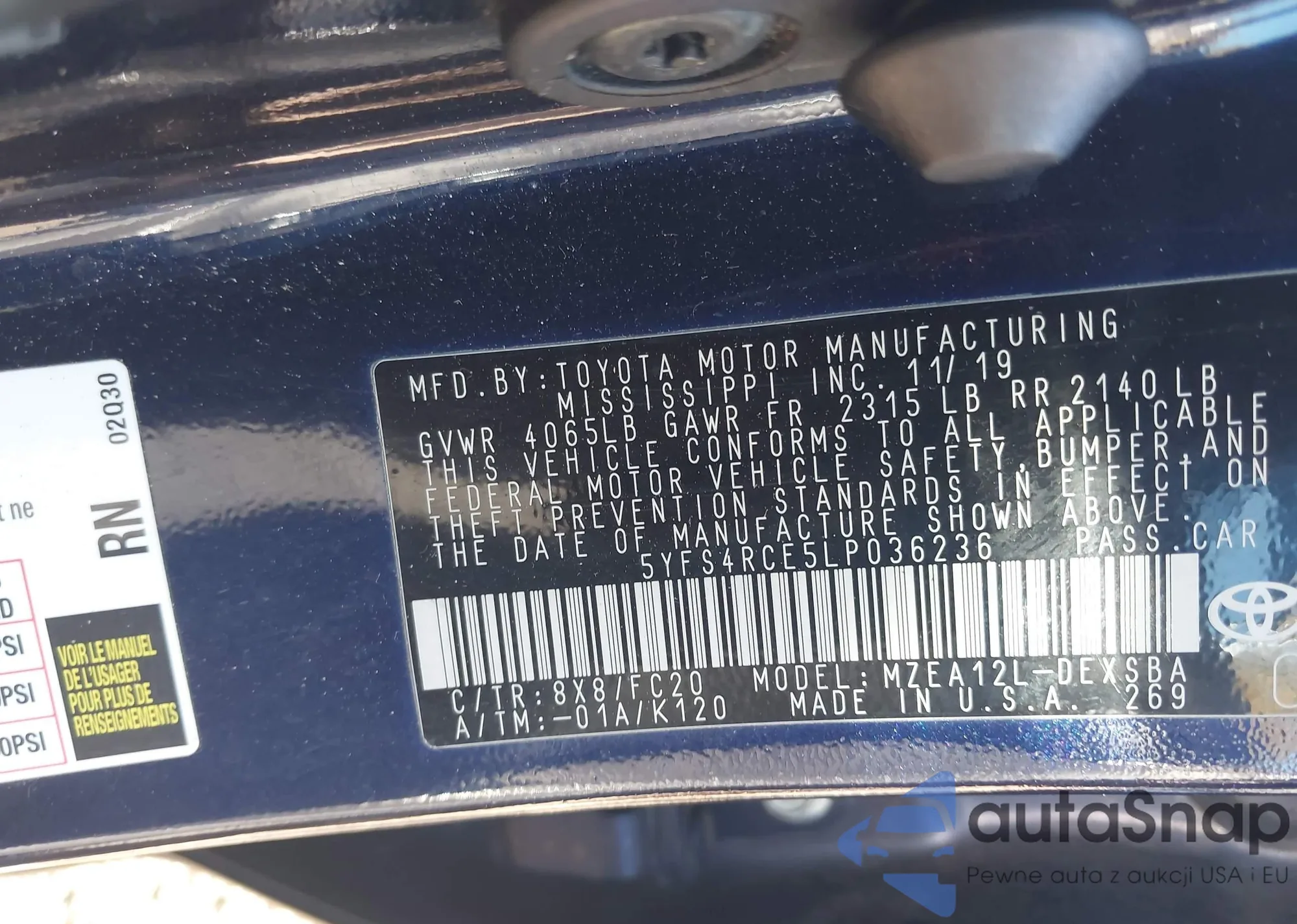 LOT: 43707272 VIN: 5YFS4RCE5LP036236