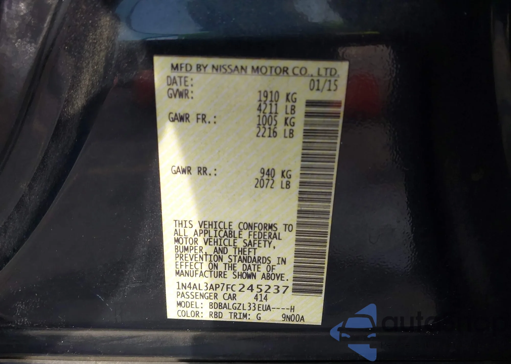 LOT: 44116452 VIN: 1N4AL3AP7FC245237