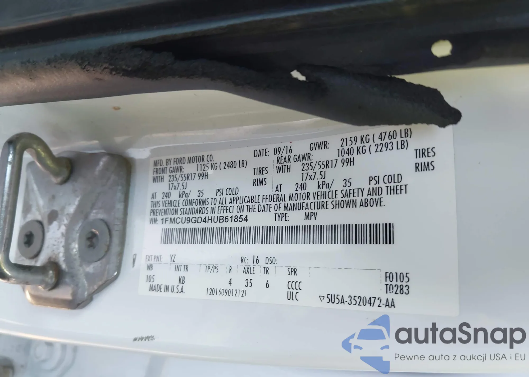LOT: 43638380 VIN: 1FMCU9GD4HUB61854
