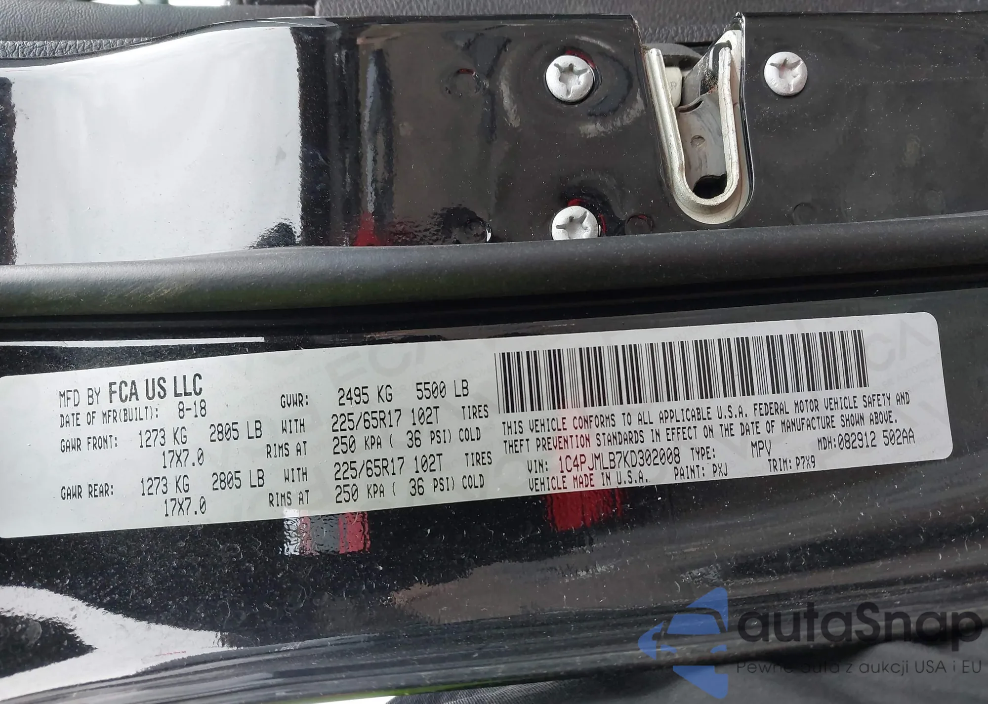 • VIN 1C4PJMLB7KD302008
