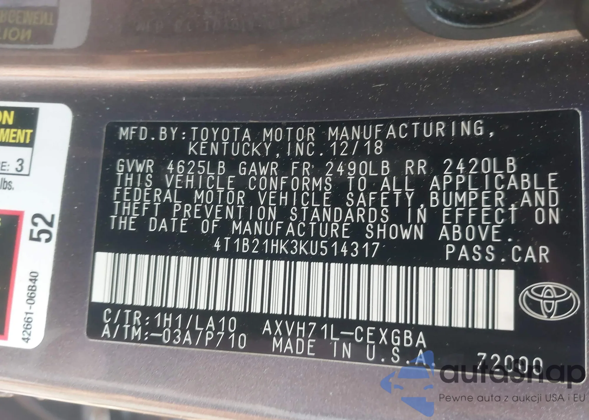 • VIN 4T1B21HK3KU514317
