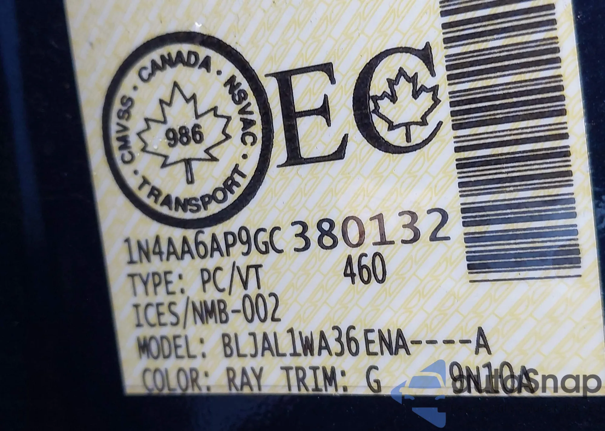 • VIN 1N4AA6AP9GC380132
