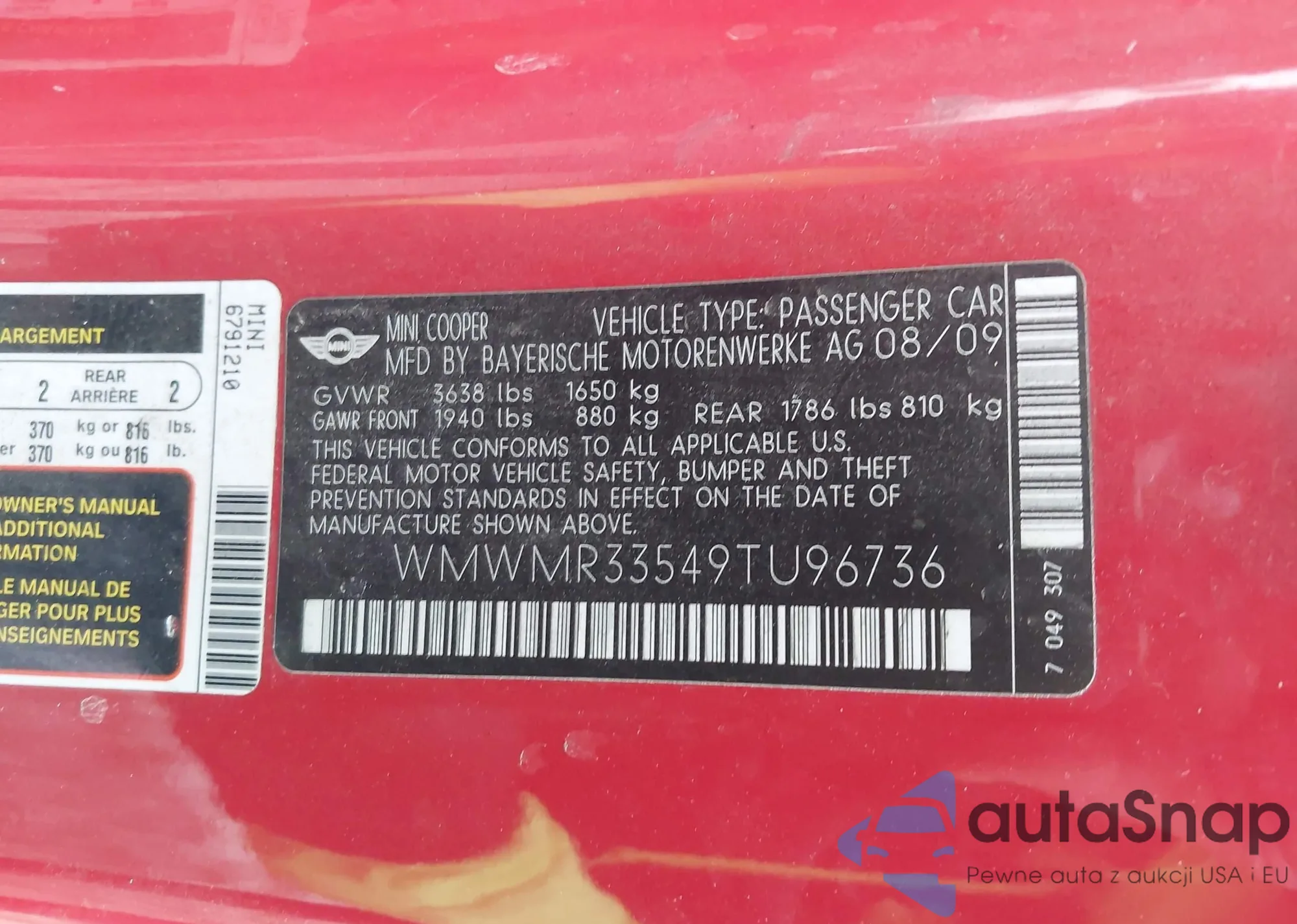 • VIN WMWMR33549TU96736