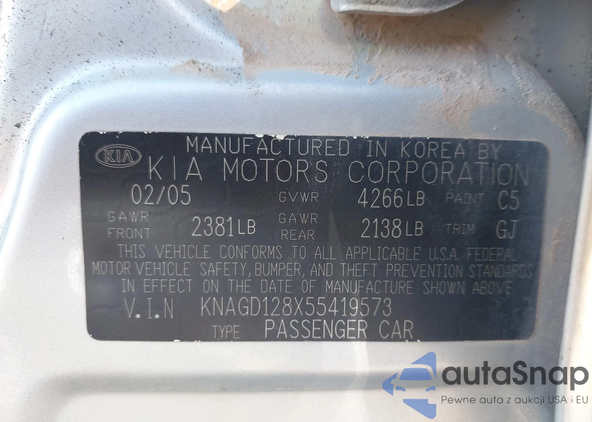 LOT: 43608424 VIN: KNAGD128X55419573
