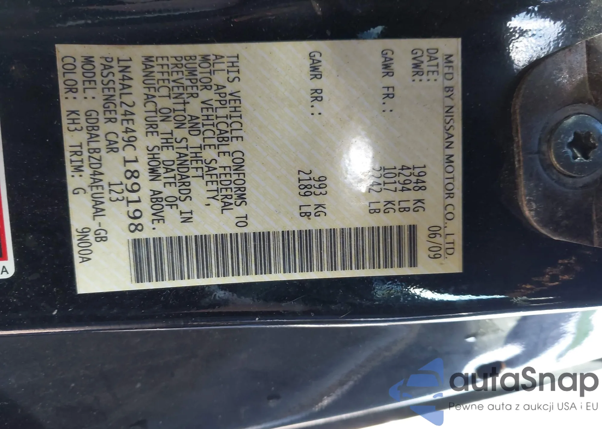 LOT: 43717509 VIN: 1N4AL24E49C189198