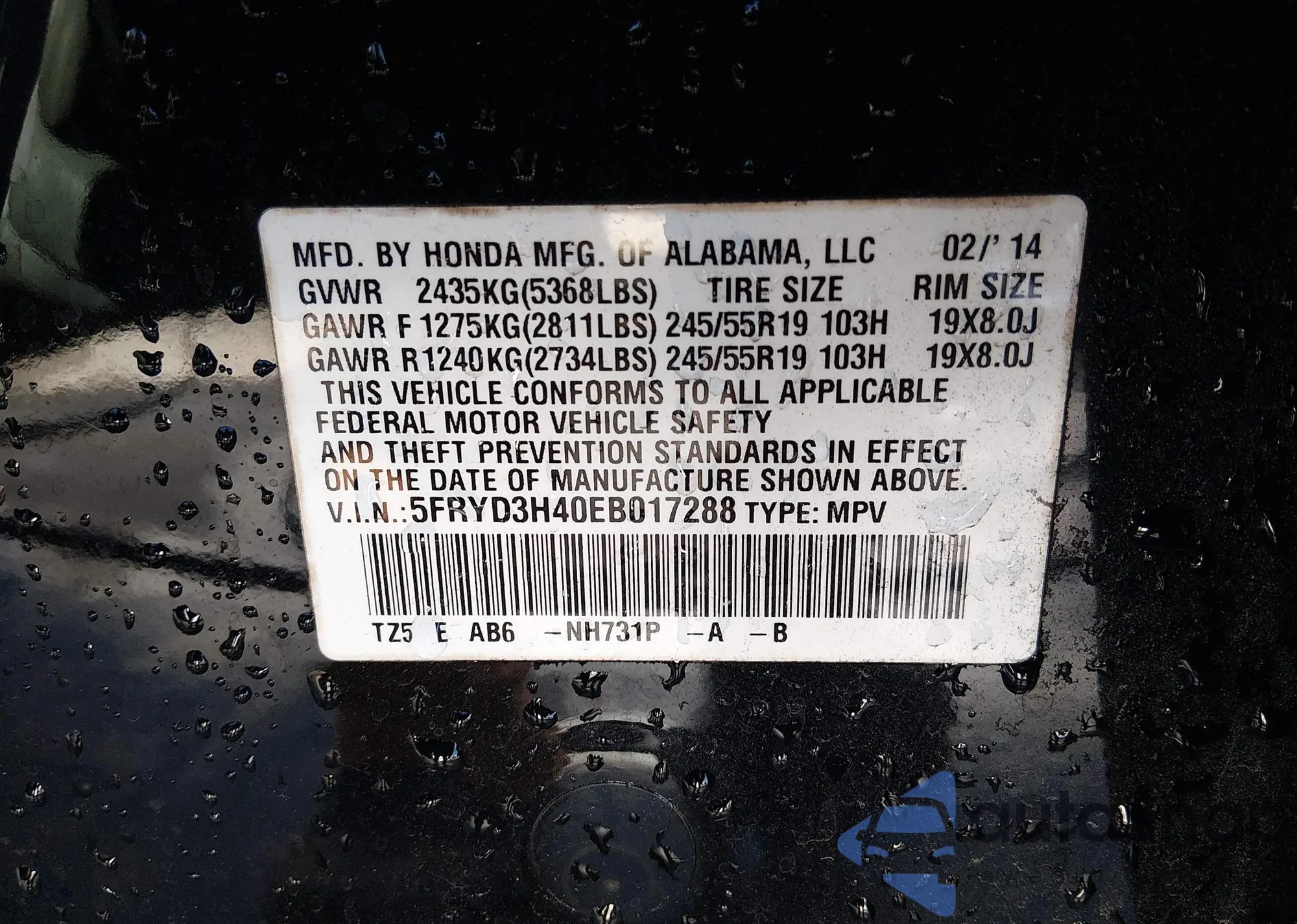 • VIN 5FRYD3H40EB020711