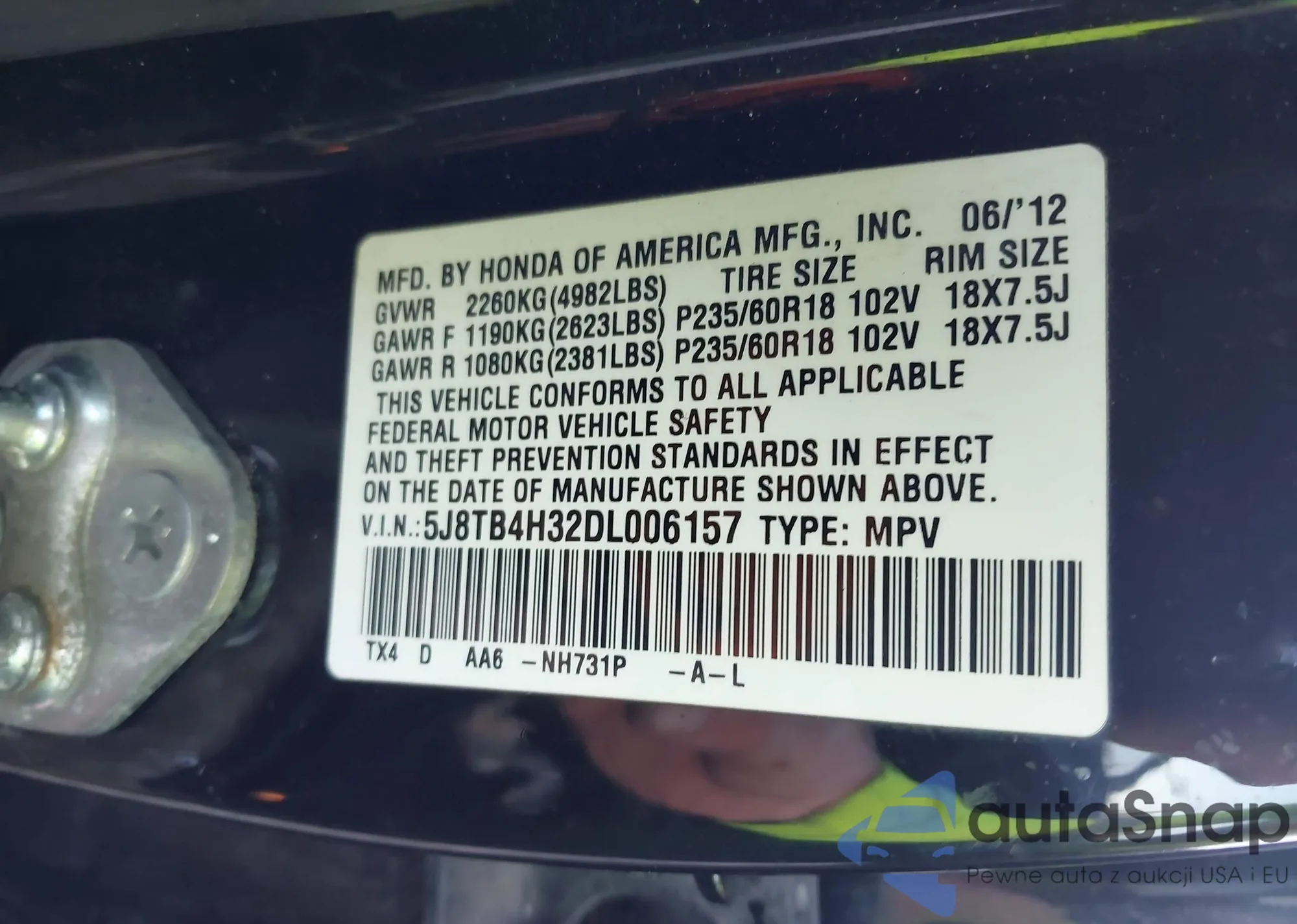 • VIN 5J8TB4H32DL006157